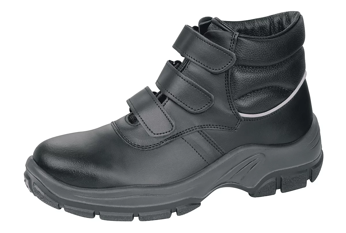 Der schwarze ABEBA Sicherheitsschuh CHAMPION 1655 verhindert dank seiner Sicherheitsstufe S3 gemäß EN ISO-Norm 20345 unnötige Unfälle in Ihrem Arbeitsalltag. Die integrierte Stahlkappe schützt zuverlässig vor Verletzungen infolge von Stößen bis 200 J oder Quetschungen bis 1500 daN. Auch gegenüber Stromschlägen sind Sie durch die antistatischen Eigenschaften des Produkts abgesichert. Die rutschfeste und durchtrittsichere Sohle schließt weitere Risiken aus, die auf der Arbeit drohen. Der ABEBA Sicherheitsschuh CHAMPION 1655 ist hochgeschlossen und mit Klettverschluss versehen, was für ausgezeichnete Stabilität und hohen Tragekomfort sorgt.