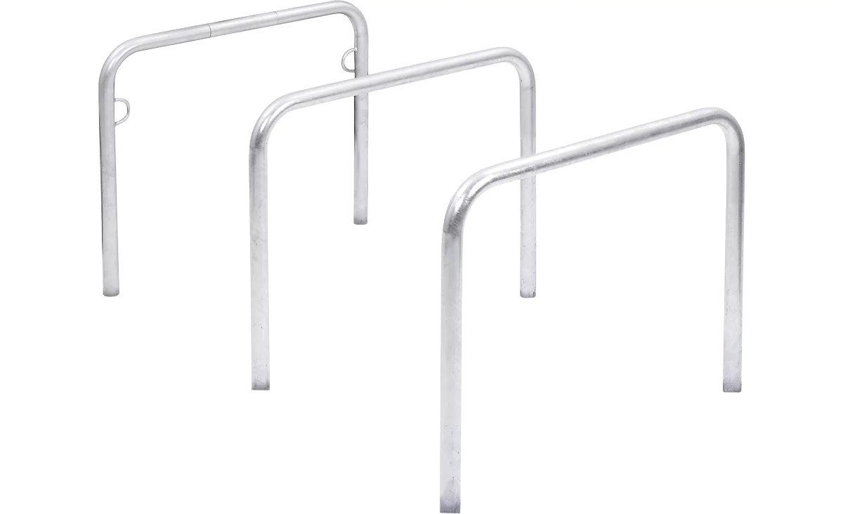 Dieser Anlehnbügel von WSM kann zweiseitig eingesetzt werden. Gefertigt wurde er aus robustem, feuerverzinktem und korrosionsbeständigem Stahl-Rundrohr mit einem Durchmesser von 48 mm.