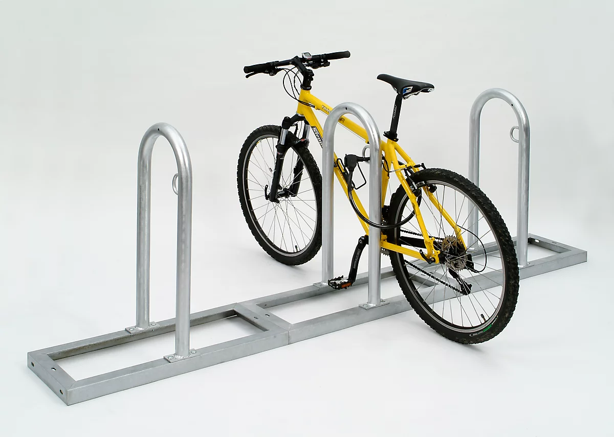 - Material Grundrahmen und Anlehnbügel: jeweils Winkelstahl bzw. Stahlrohr mit ø 48 mm; wahlweise feuerverzinkt oder pulverbeschichtet in RAL-Farbton Ihrer Wahl