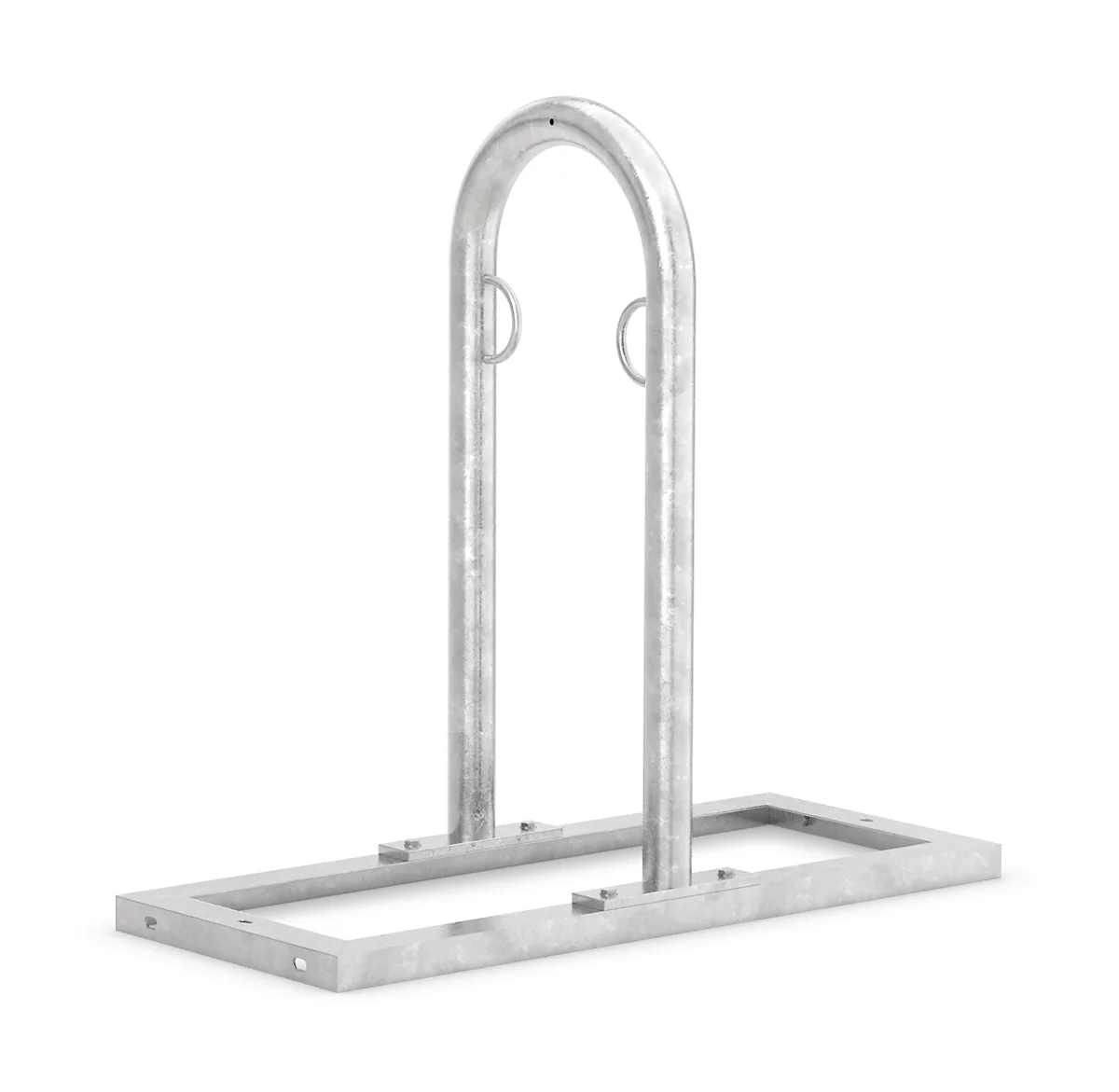 Der Anlehnbügel ist mit einer praktischen Stahl-Rundöse ausgestattet, mit deren Hilfe der Fahrradrahmen besonders diebstahlsicher befestigt werden kann.