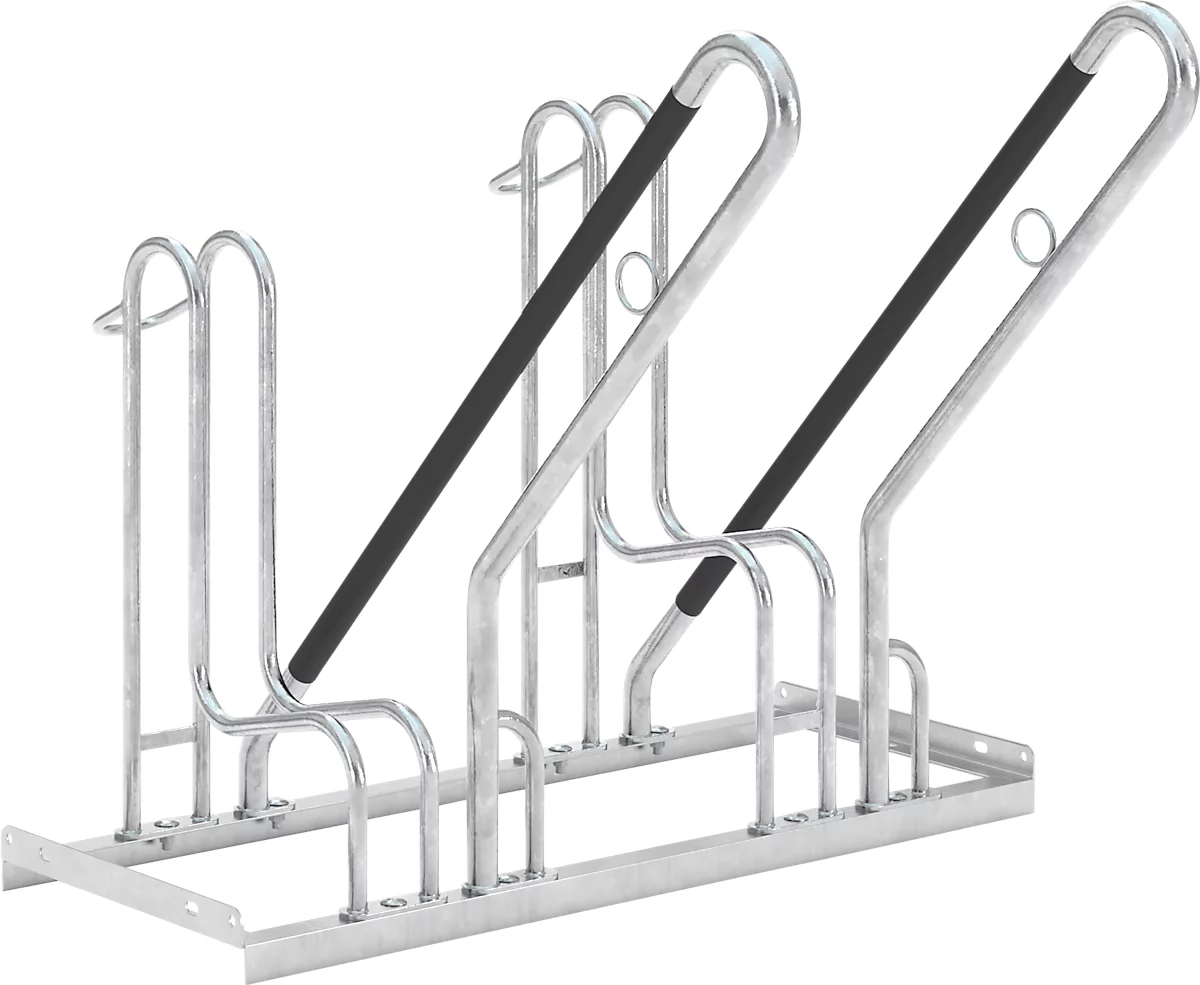 Sie stellen das moderne Parksystem für Räder frei auf, die Konstruktion ist voll verschraubt. Das Material des innovativen Radständers besteht aus feuerverzinktem Strahlrohr mit einem Durchmesser von 18 mm. Nicht zuletzt punktet dieses Anlehnsystem mit seinem geringen Platzbedarf aufgrund seiner Konstruktion aus alternierenden Hoch- und Tiefständern.