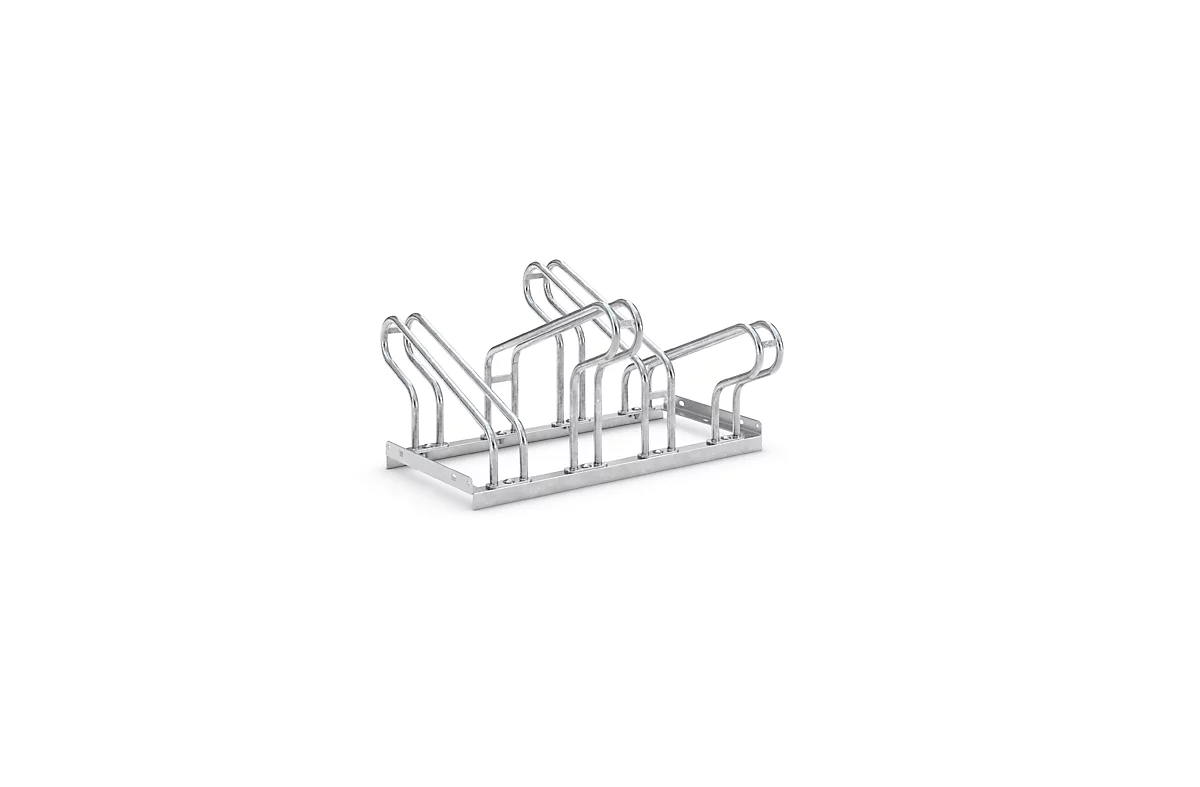 So ist er beidseitig für die Aufnahme von Fahrrädern mit einer Reifenbreite bis 55 mm geeignet. Darüber hinaus sorgt die abwechselnde Hoch- bzw. Tiefstellung der aus 19 mm Stahl-Rundrohr bestehenden Einstellplatzbügel dafür, dass die Fahrräder ausgesprochen platzsparend geparkt werden können. Der Abstand zwischen den Rädern beläuft sich dabei auf jeweils 350 mm.