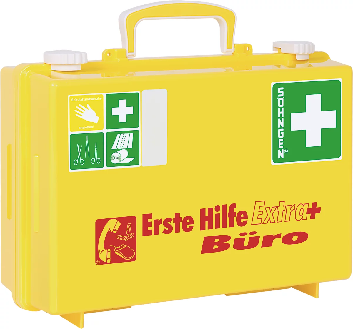 - Erste-Hilfe-Koffer nach DIN 13157 mit Zusatzausstattung für die Verwendung in Büro und Verwaltung
