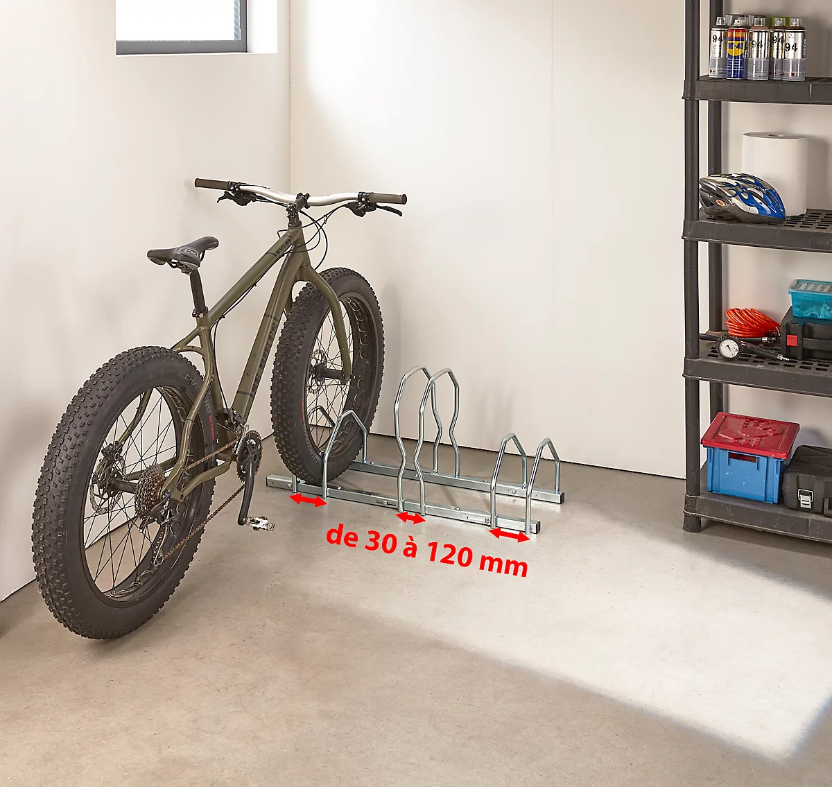 Der „Fat Bike“ Fahrradständer von MOTTEZ ist eine clevere Lösung, um Ihr Fahrrad sicher und platzsparend abzustellen. Durch sein intelligentes Design wird das mittlere Fahrrad höher gestellt, um Kollisionen mit den Fahrrädern auf den Seiten zu vermeiden. Der Ständer ist flexibel und kann Reifen mit einer Breite von 30 mm bis 122 mm aufnehmen, wodurch er für verschiedene Fahrradtypen geeignet ist. Er ist selbsttragend und benötigt keine Bodenbefestigung, wodurch eine einfache und flexible Nutzung ermöglicht wird.