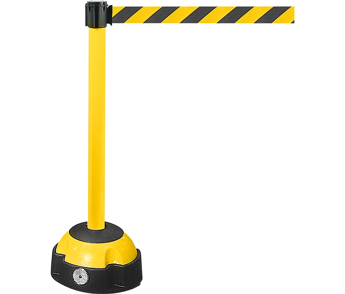 Robustes und günstiges Absperr- und Leitsystem. Immer schnell einsatzbereit, um Wege und Flächen zu sperren oder Personenwege zu gestalten. Der selbstspannende Gurt lässt sich leicht aus der Kassette ziehen. Eine Fliehkraftbremse sorgt für kontrolliertes Rückführen des selbstaufrollenden Gurtbandes. Oberteil aus lackiertem Aluminium. Befüllbarer Kunststofffuß (Sand, Splitt) mit Reflektoren. Dauerhafte Fixierung durch 4 integrierte Dübelaufnahmen.