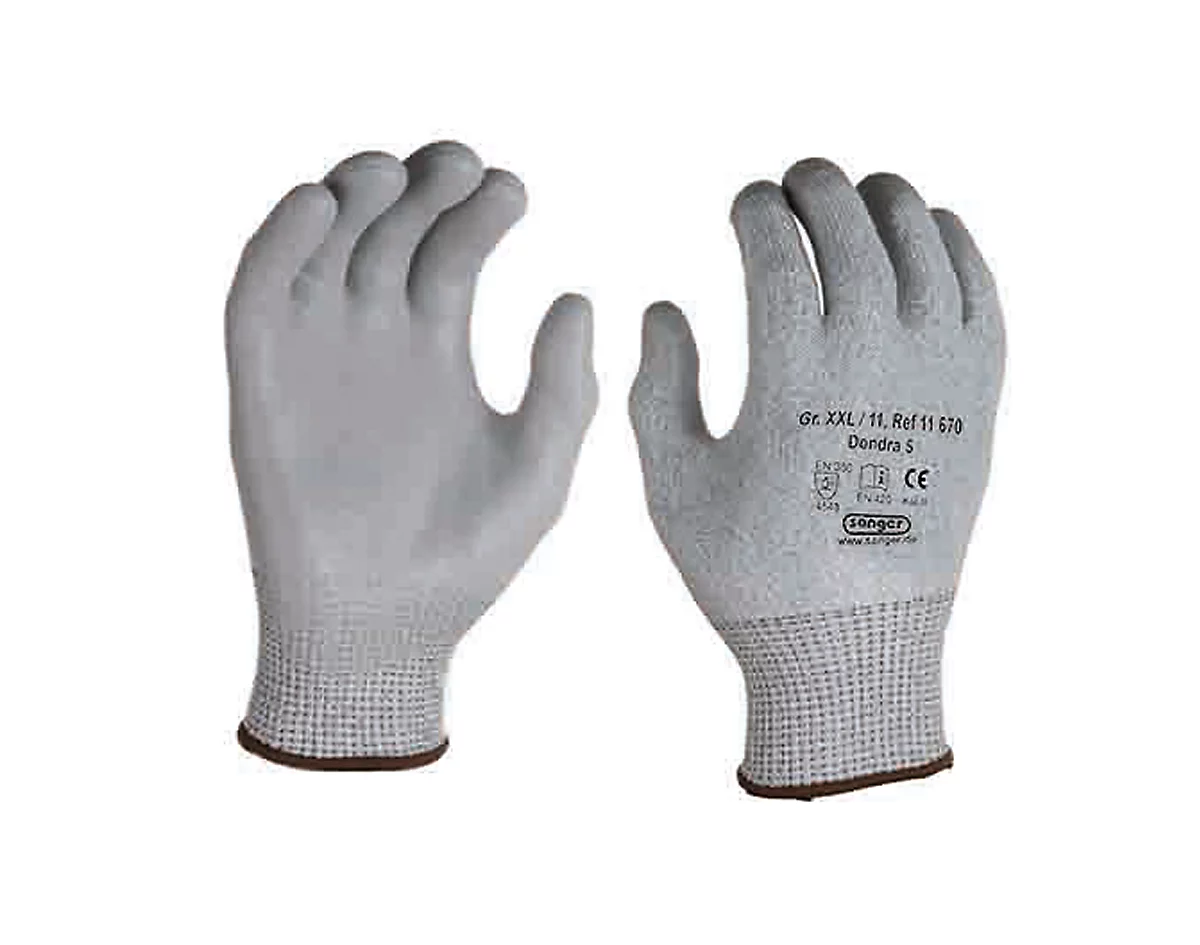 Die silikonfreien HPPE-Schnittschutz-Strickhandschuhe lassen sich in vielen Bereichen einsetzen. Dazu zählen die Automobilindustrie und die Leder- und Papierindustrie ebenso wie die Lebensmittelverarbeitung oder Bereiche im Handwerk, in der Glas- und Holzindustrie oder im Maschinen- und Werkzeugbau. Auch im Umgang mit Verpackungen oder scharfkantiger weißer Ware bieten die Handschuhe aus schnittfestem HPPE-Garn mit Nylon mit Glasfaseranteil, 13G, gut schützende Eigenschaften bei voller Griffkontrolle. Die neuartige Polyurethan-Dispersion-Mikroschaum-Beschichtung wird auch hohen Schnittschutzanforderungen gerecht. Eine gute Wärmeableitung sorgt dafür, dass Sie in den Handschuhen nicht schwitzen. Mit der optimierten Kontur-Passform der Finger und der hohen Flexibilität lässt sich komfortabel arbeiten, ohne die Hände frühzeitig zu ermüden. Waschbar bis 40° Celsius, lassen sich die HPPE-Schnittschutz-Strickhandschuhe Dondra mit DMF-freier PUD-Beschichtung gut reinigen und immer wieder einsetzen.