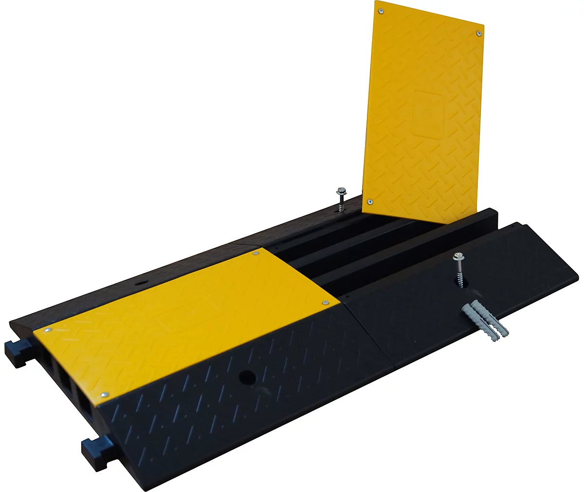 Bringen Sie Struktur in Ihr Kabelsystem und machen Sie mit der Kabelbrücke Wege für Fahrzeuge und Mitarbeiter sicher! Denn lose herumliegende Kabel und Leitungen im Betrieb sind nicht nur unschön, sondern auch ein hohes Sicherheitsrisiko. Mit der robusten Kabelbrücke im 2er-Set lassen sich Beeinträchtigungen des Betriebs- und Lagerverkehrs durch freiliegende Kabel, Schläuche etc., die zu Stürzen und Unfällen führen können, effektiv vermeiden.