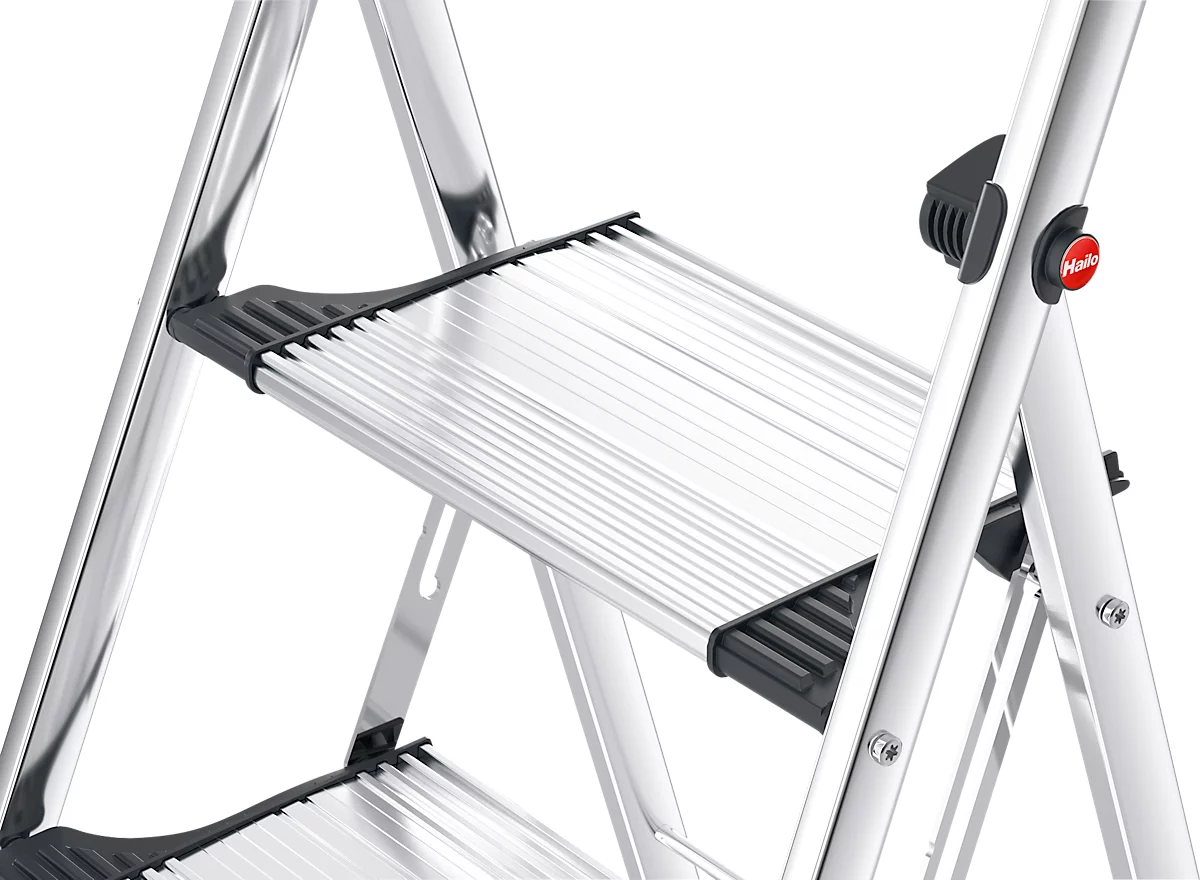 Der Hailo Komfort-Klapptritt aus Aluminium mit Soft-Grip-Sohle für optimalen Stand auf verschiedenen Böden.