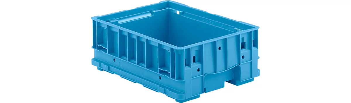 Der Kleinladungsträger C-KLT ist stabil aus Polypropylen gefertigt und in verschiedenen Größen erhältlich. Das Modell in der Farbe Hellblau ist bis 50 kg belastbar.