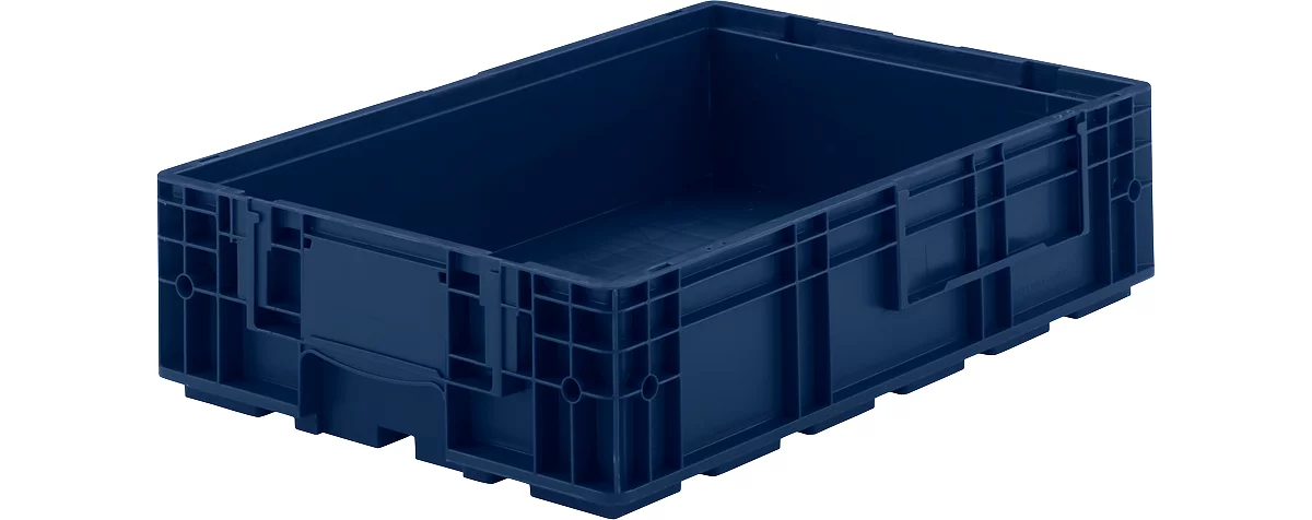 Der Kleinladungsträger R-KLT besteht aus robustem Polypropylen und ist bis 20 kg belastbar. Das Modell ist in verschiedenen Größen erhältlich und wird in der Farbe Dunkelblau geliefert.