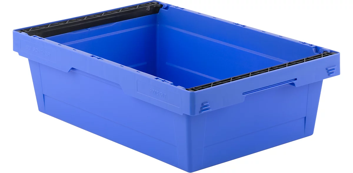 In dieser Variante mit zweigeteiltem, anscharniertem, also unverlierbarem Klappdeckel, ist Ihre Ware bestens vor Verschmutzung geschützt. Durch den Deckel sind die Boxen auch mit unterschiedlichen Grundmaßen stapelbar. Beim Ineinanderverschachteln klappen die Deckel eng anliegend nach außen.