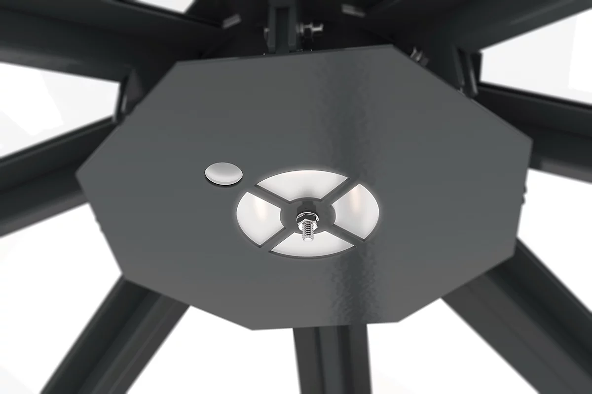 Sie erhalten die LED-Beleuchtung für den Achteck-Raucherpavillon Modell Paris in verschiedenen, attraktiven RAL-Farbtönen der Metall-Abdeckplatte.