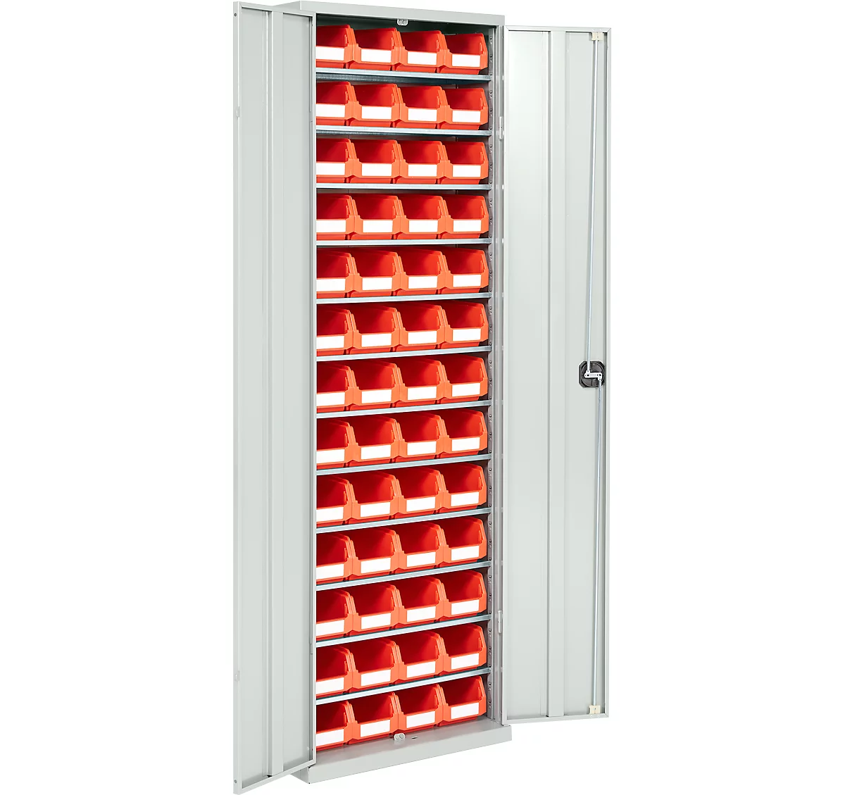 Ordnung, Übersicht und viel mehr Platz in Ihrem Kleinteilelager – das erreichen Sie mit diesem Regalschrank bequem und preiswert.