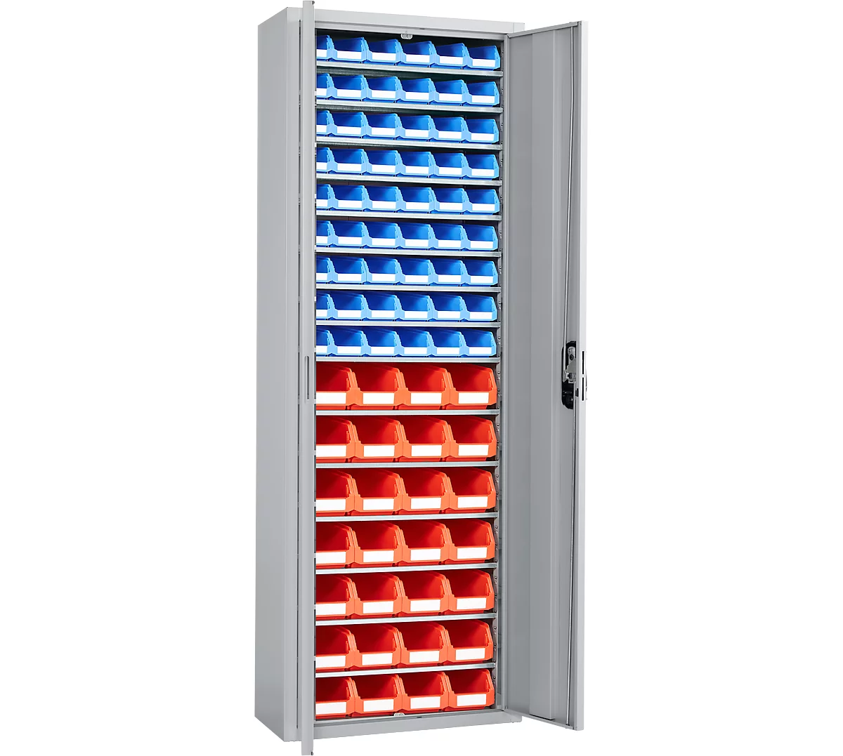 Ordnung, Übersicht und viel mehr Platz in Ihrem Kleinteilelager – das erreichen Sie mit diesem Regalschrank bequem und preiswert.