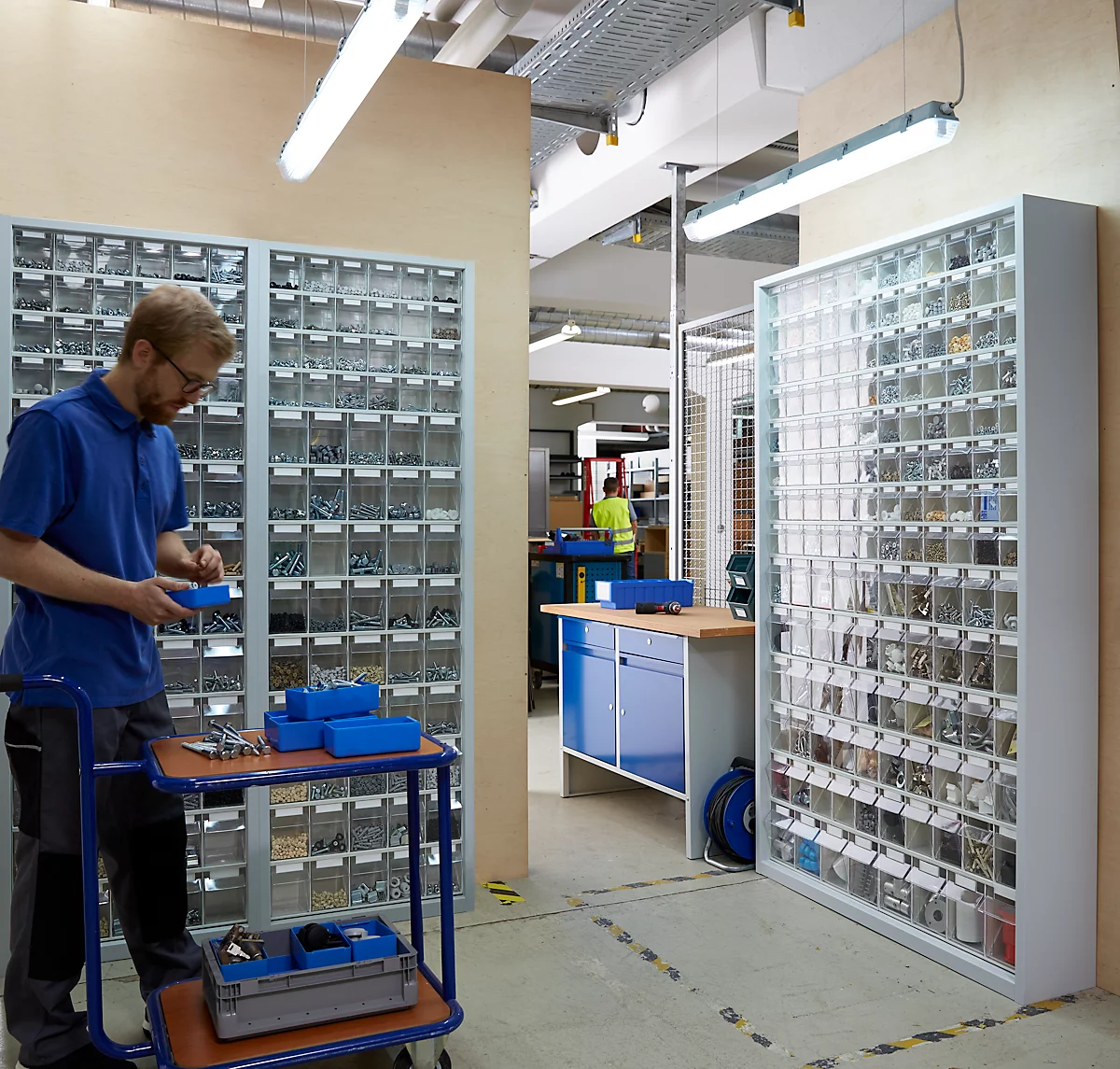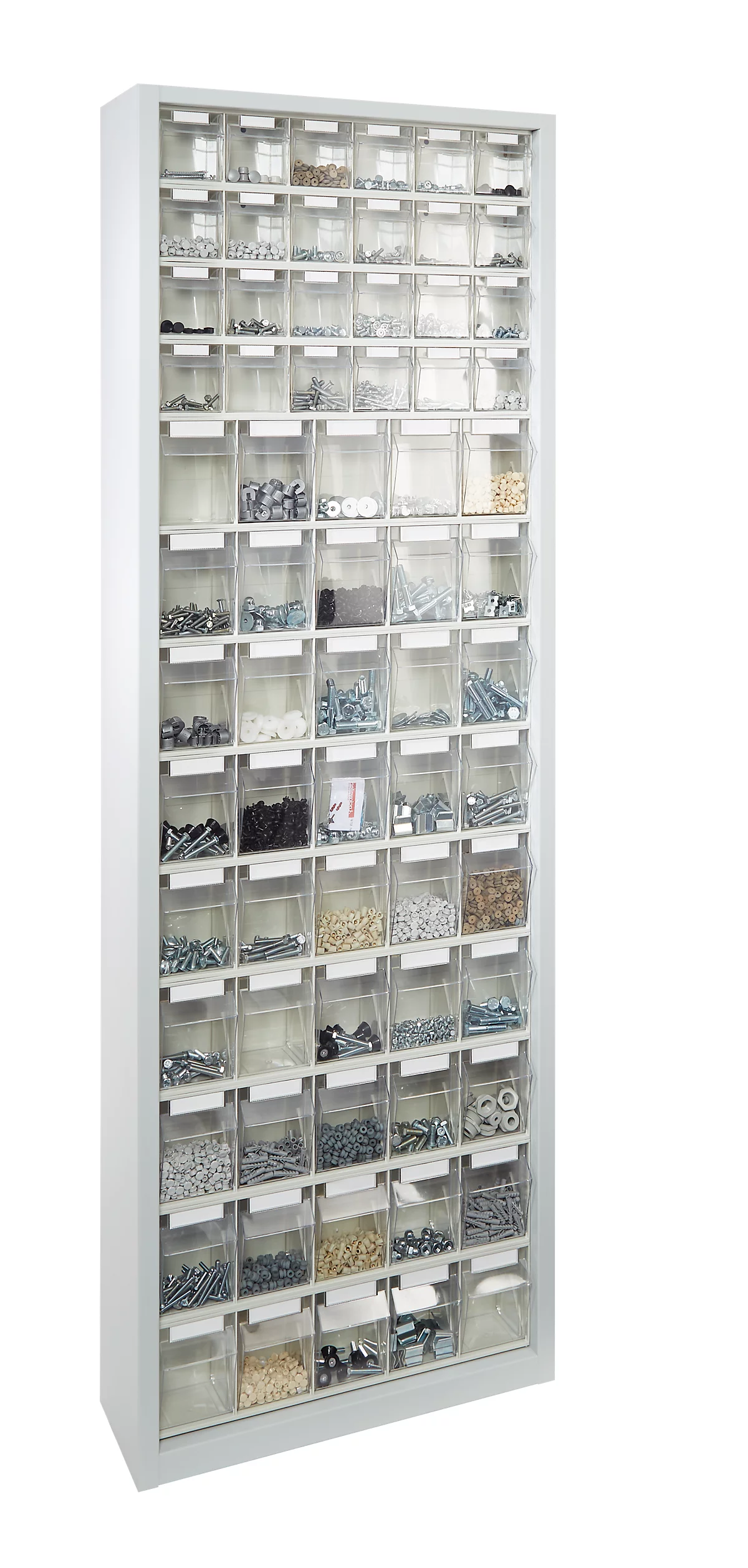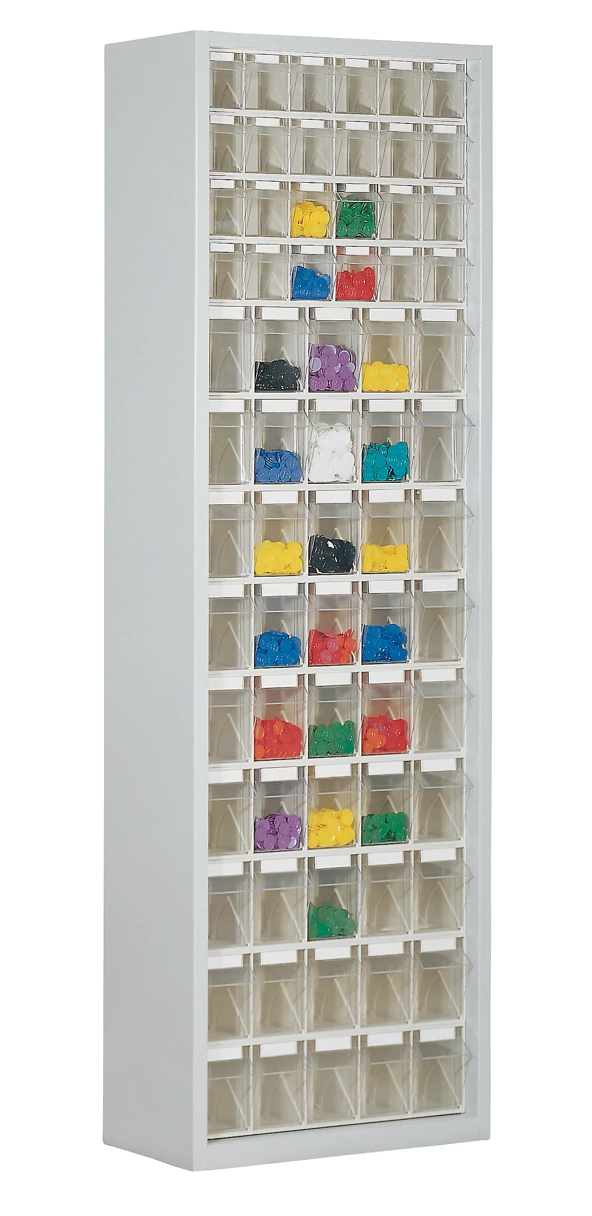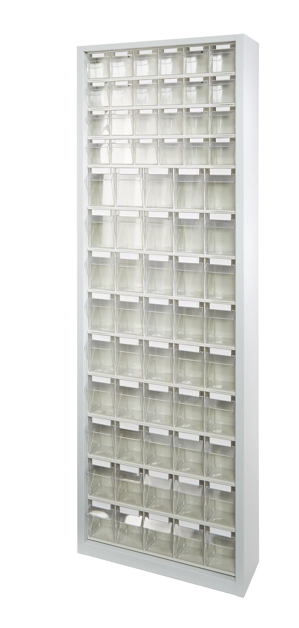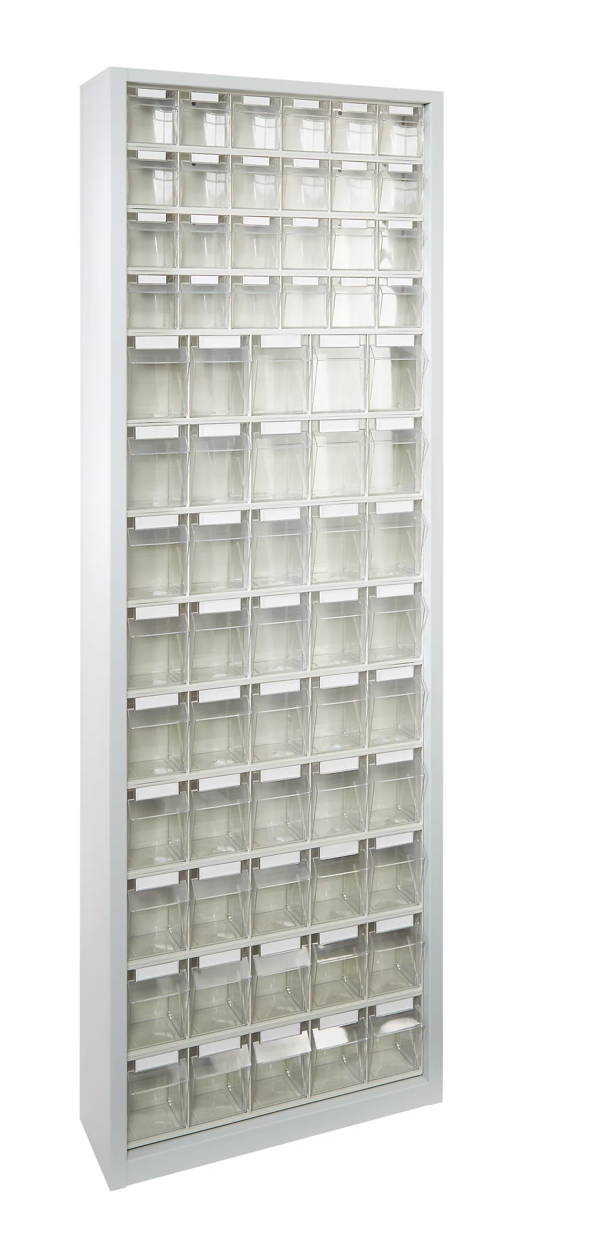 Dieser insgesamt 333 l fassende Magazinschrank mit einem Korpus aus pulverbeschichtetem Stahlblech ist genau die richtige Wahl, um in Industrie und Werkstatt, in Laboren und Praxen, medizinischen Einrichtungen oder auch in Verkaufsräumen Kleinteilen sowie wichtiges Zubehör übersichtlich und schmutzfrei aufzubewahren.