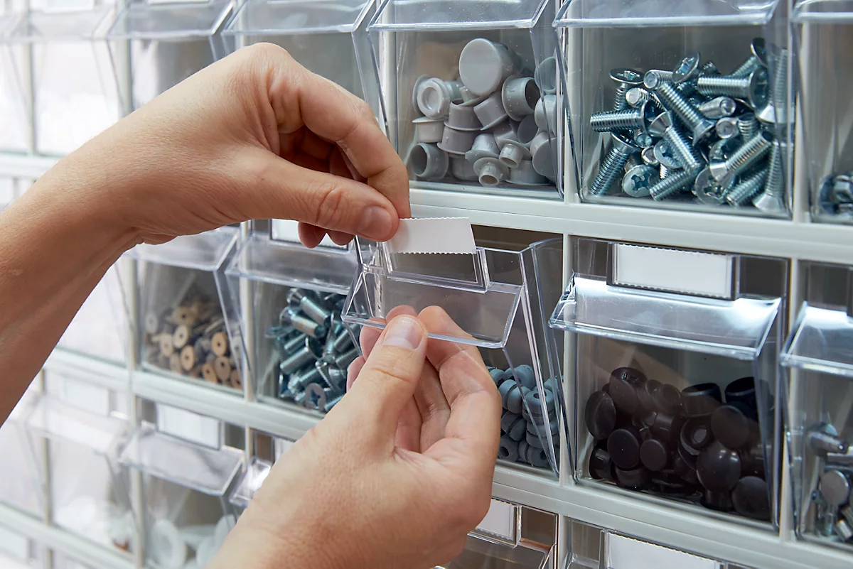 Zu diesem Zweck ist er mit Klappkästen aus transparentem Polystyrol bestückt – einem im Bereich von -20 C° bis +80 °C temperaturbeständigen Material. Die Klappkästen können einfach herausgenommen werden und besitzen hierfür jeweils eine praktische Griffmulde. Um stets den Überblick über ihren jeweiligen Inhalt zu behalten, sind die Kästen zudem mit integrierten Etikettenhaltern versehen. Passende Etiketten werden direkt mitgeliefert.