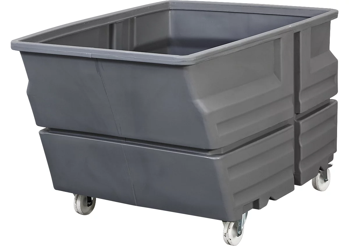 Das Produkt in Grau garantiert einen sicheren Einsatz im Betrieb und außerhalb. Im Umgang mit schädlichen Gefahrstoffen und gefährlichen Substanzen hat Materialqualität einen unschätzbaren Stellenwert. Langlebiges, leichtes Polyethylen (PE) unterbindet die Korrosion des Produktes. Um Ihre innerbetriebliche Logistik zu optimieren, ist es mit einem Fahrgestell ausgestattet.