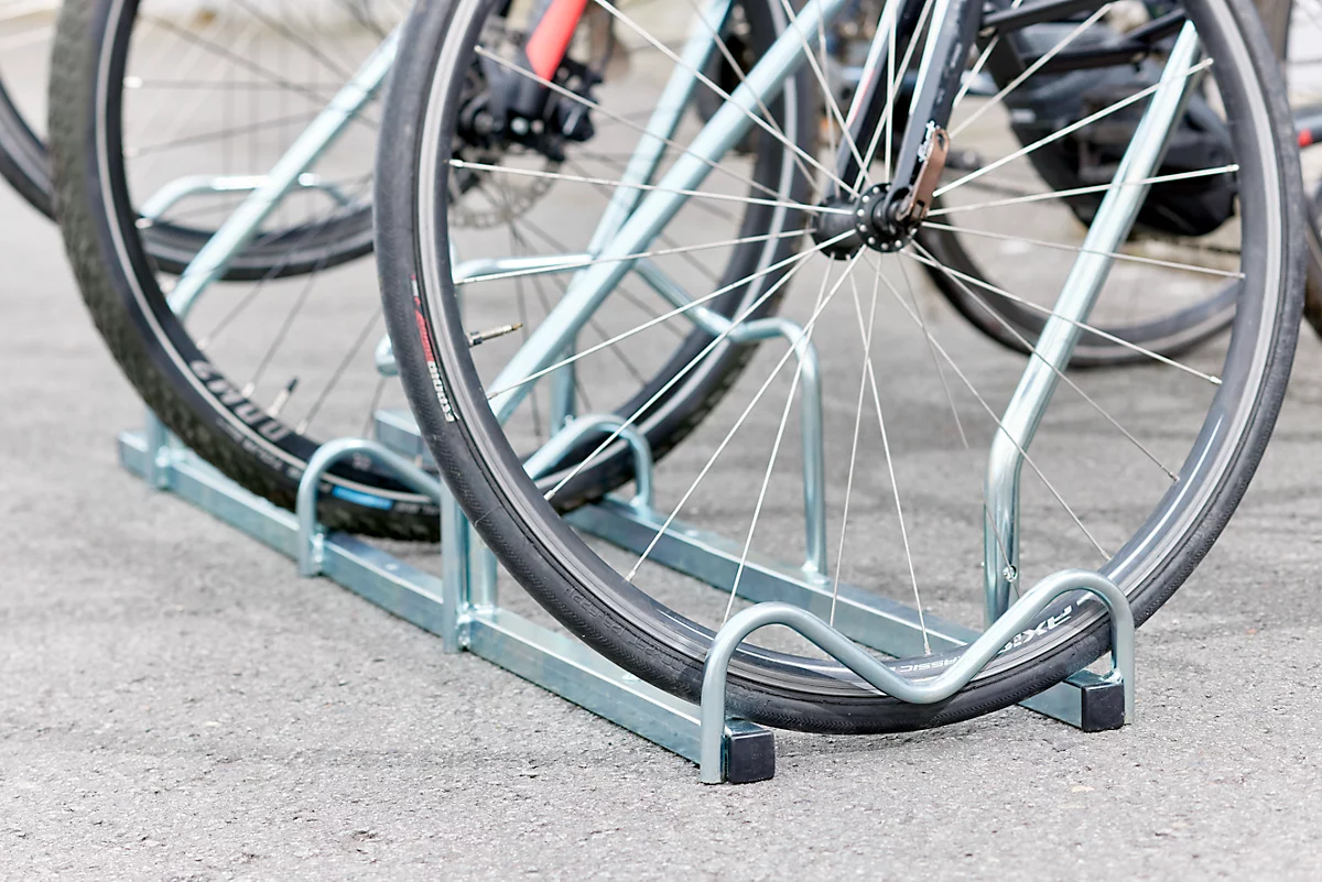 Der Mottez Fahrradständer für 2 Fahrräder ist ein äußerst praktisches und nützliches Produkt für jeden Fahrradbesitzer. Der mit Gummi umhüllte Bügel schützt die Rahmenfarbe der Fahrräder vor Kratzern und Beschädigungen. Das Grundmodul ist beliebig erweiterbar und ermöglicht somit eine individuelle Anpassung an die Anzahl der Fahrräder.