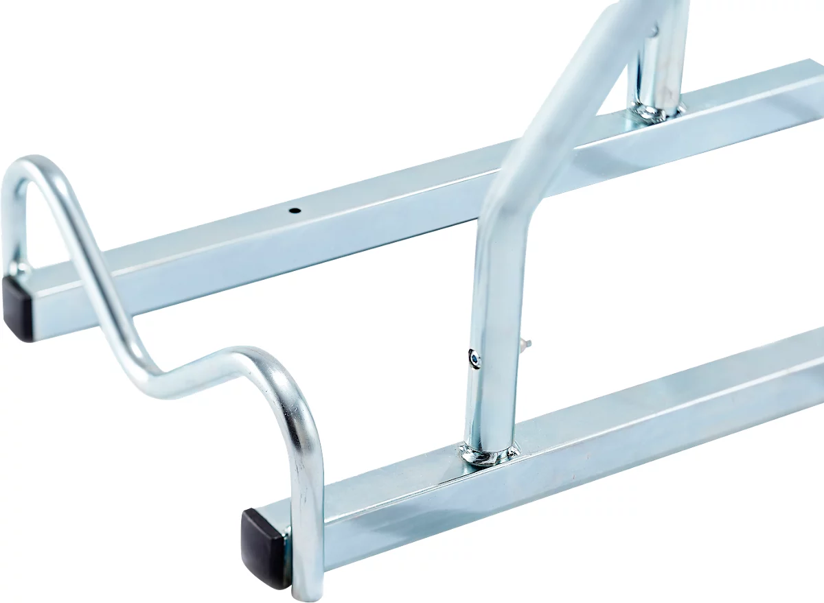 Das Verlängerungsmodul wird dank einer einfachen Steckmontage mit dem Grundständer verbunden. Der umhüllte Bügel aus Gummi schützt die Rahmenfarbe der Fahrräder. Das Vorderrad wird auf einem Bügel fixiert, ohne die Speichen der Räder zu beschädigen.