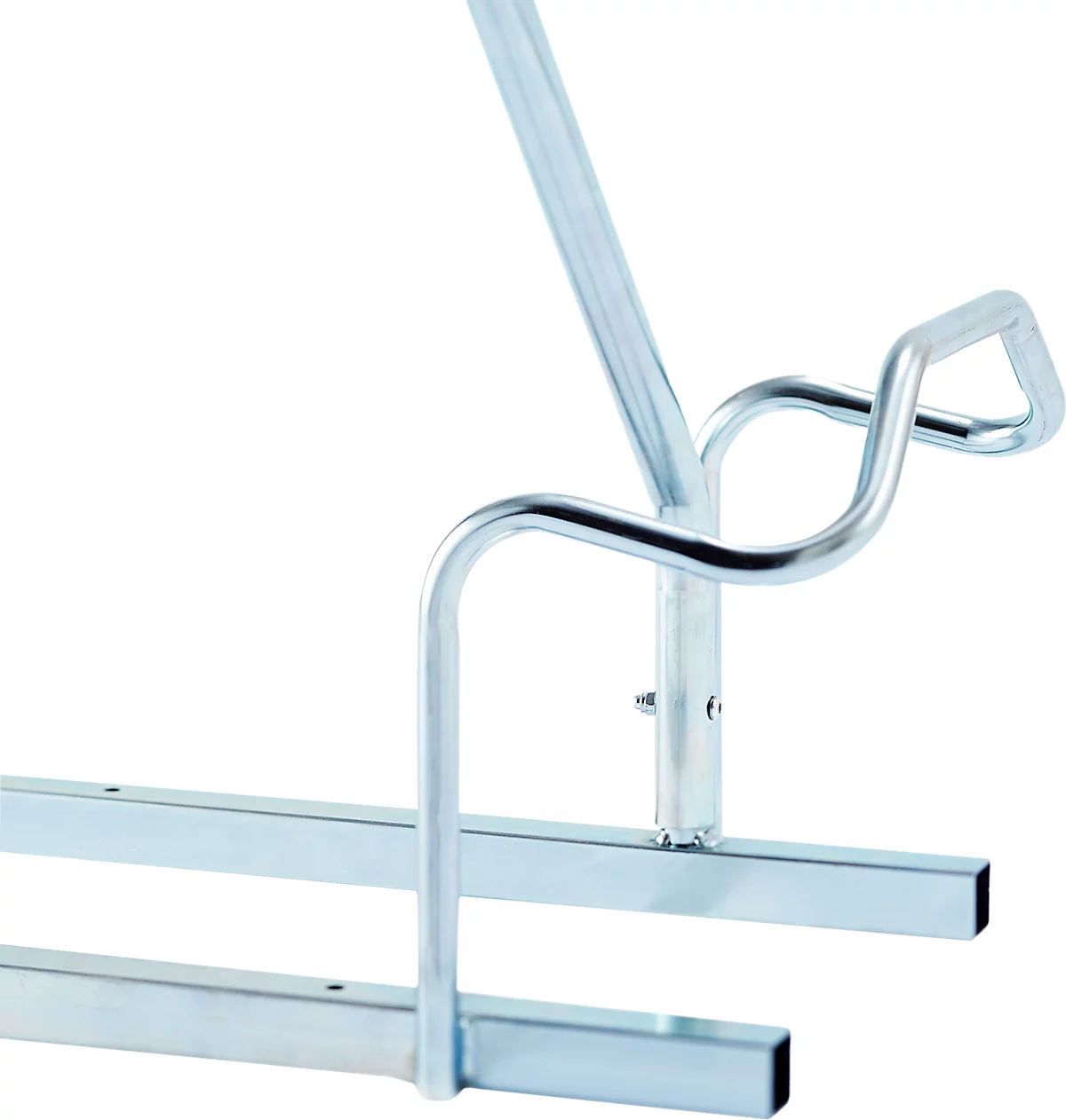 Es besitzt eine niedrige und eine hohe Position, um 2 Fahrräder nebeneinander zu lagern, ohne dass die Lenker stören. Die Geometrie des Fahrradständers ermöglicht es, mit einem Schloss (Kabel oder U) gleichzeitig das Vorderrad und den Rahmen des Fahrrads am Bügel zu sichern.