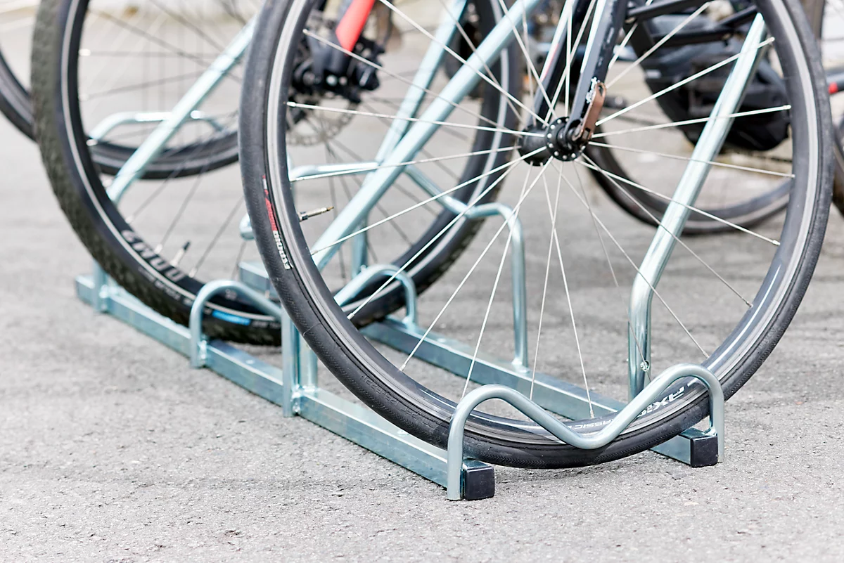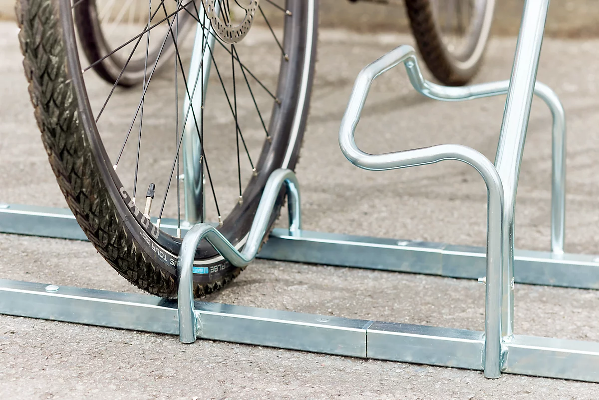 Mit dem Verlängerungsmodul können Sie Ihre Mottez Fahrradständer für 2 Fahrräder beliebig um weitere Stellplätze erweitern.