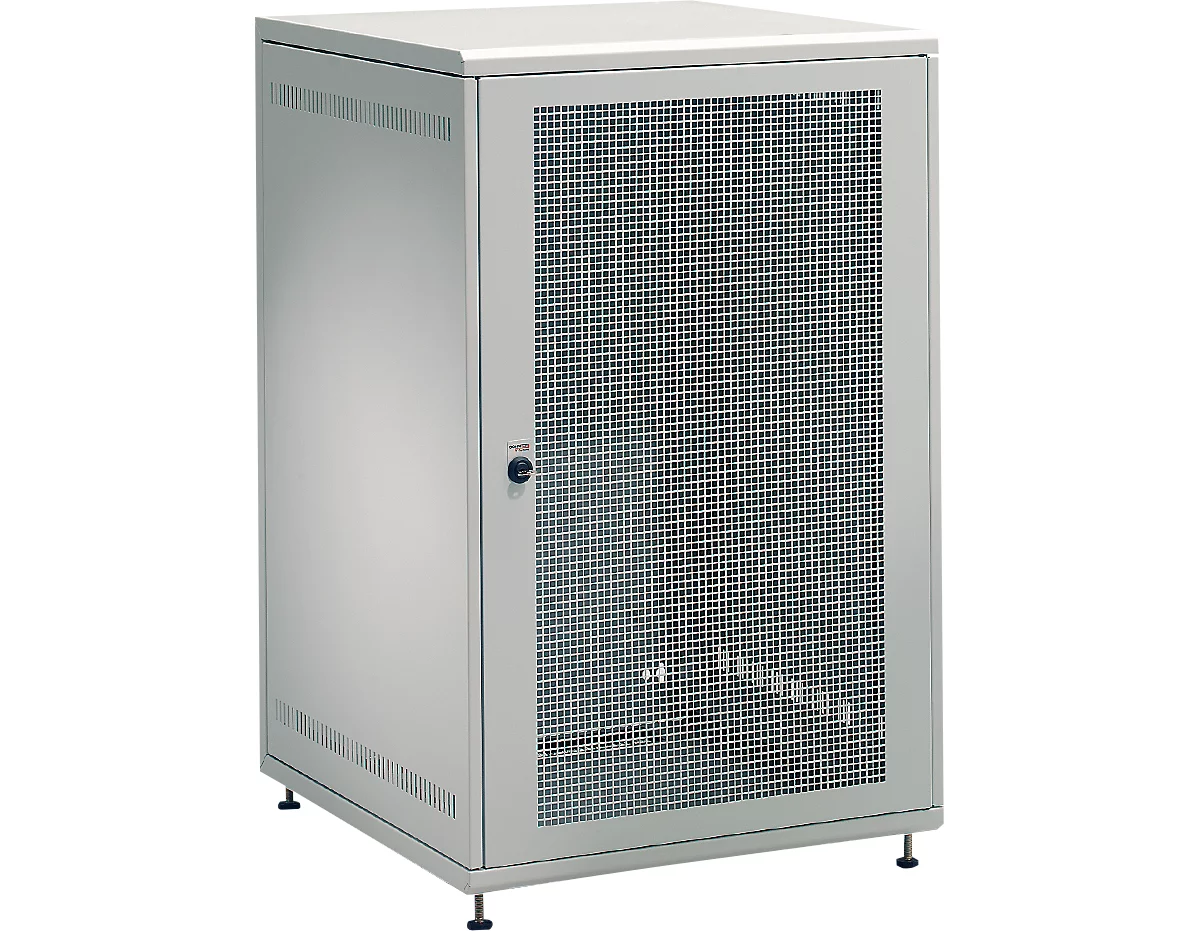 Für die Standmontage kleinerer Netzwerke, Unterverteilungen und Etagenverteiler. Nach Aufschließen der Tür können die Seitenwände einfach nach vorne herausgezogen werden, wodurch das Gehäuse von 3 Seiten zugänglich ist.