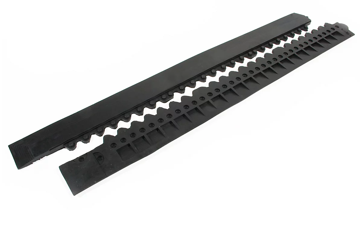 Randleisten gibt es mit und ohne Aussparungen. Das Eckstück an den Randleisten kann bei Bedarf abgeschnitten werden.