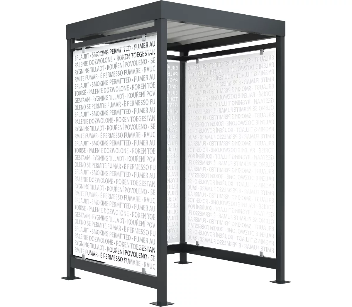 - ESG-Scheiben mit attraktivem Glasdekor „Rauchen erlaubt“