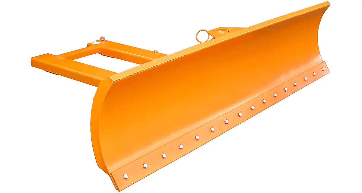 Schnelle Aufnahme mit den Gabelzinken, Sicherung gegen unbeabsichtigtes Abrutschen. Räumschild 2-fach nach rechts und links verstellbar. Stahlschürfleiste angeschraubt, dadurch schnelles Wechseln möglich.