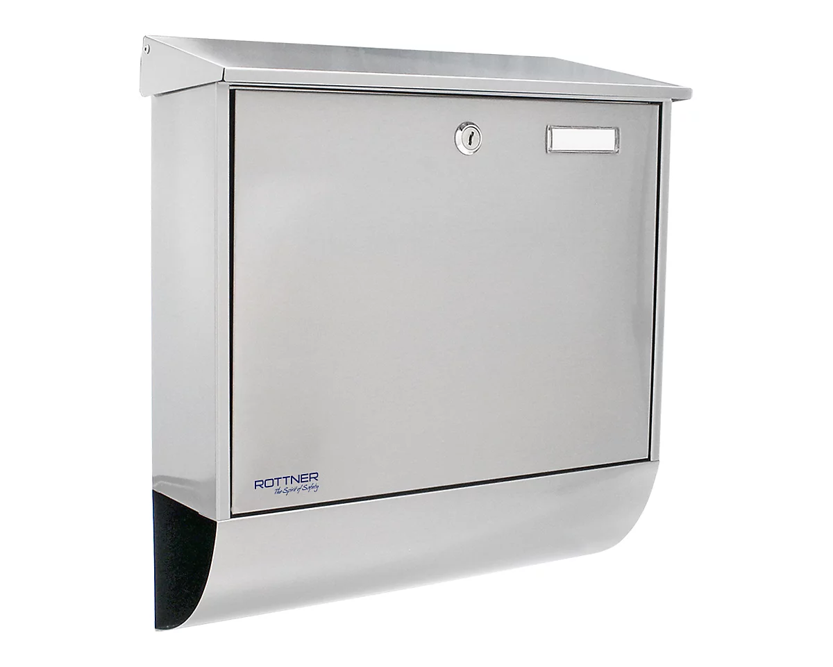 In dem Rottner Briefkasten Expo Inox sind Briefe und Postsendungen bis zu ihrer Entnahme gut geschützt und sicher aufgehoben. Er verfügt über ein zuverlässiges Zylinderschloss und an dem Einwurfschacht mit den Maßen von B 330 x H 30 mm über eine Schließklappe.