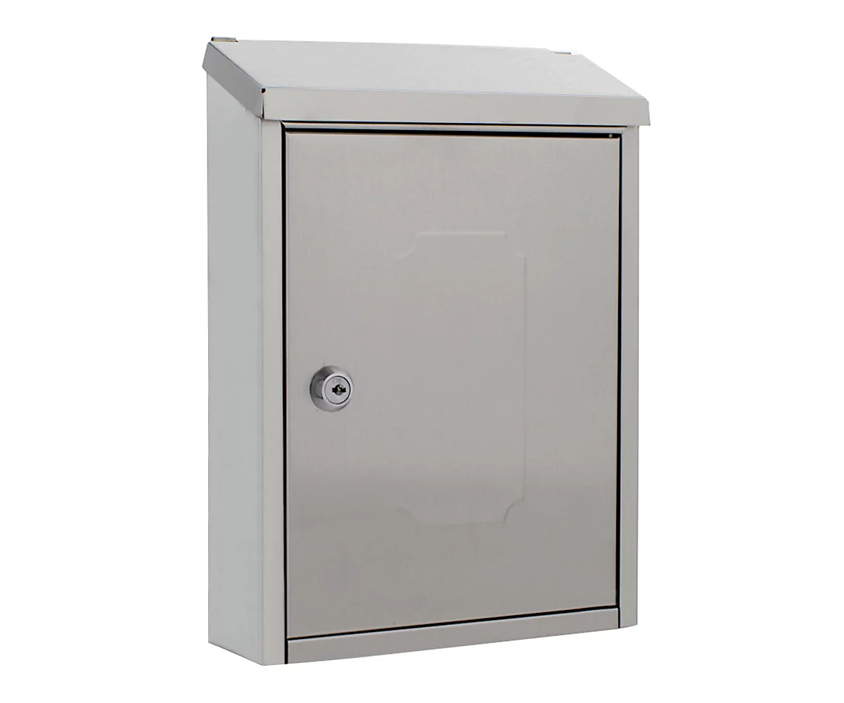 Die Außenmaße des aus gebürstetem, rostfreiem und wetterfestem Edelstahl gefertigten Briefkastens Ferrara von Rottner belaufen sich auf B 210 x T 70 x H 290 mm bei einem Gesamtgewicht von 1 kg.
