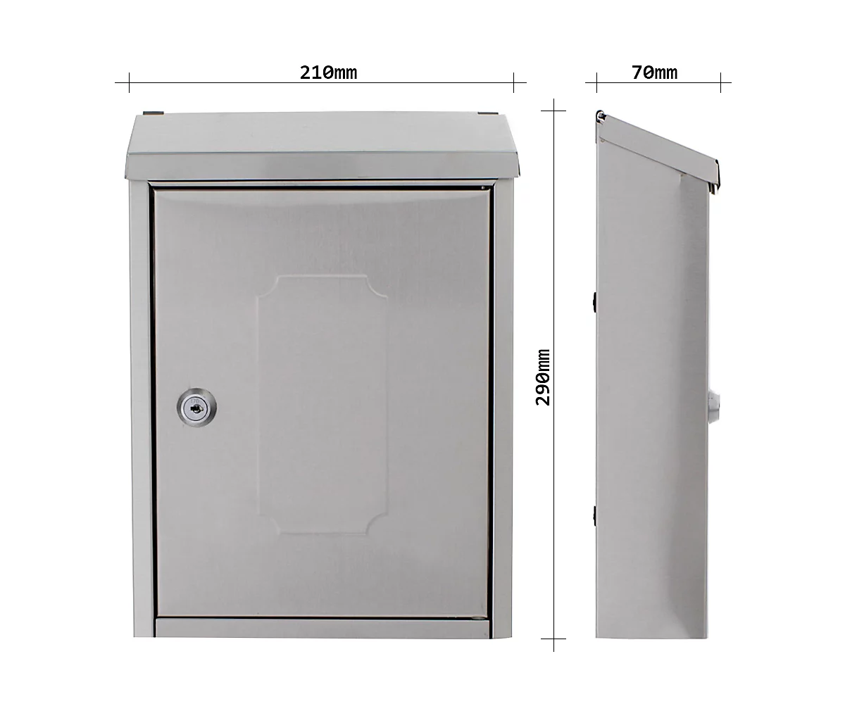 - Außenmaße Briefkasten: B 210 x T 70 x H 290 mm