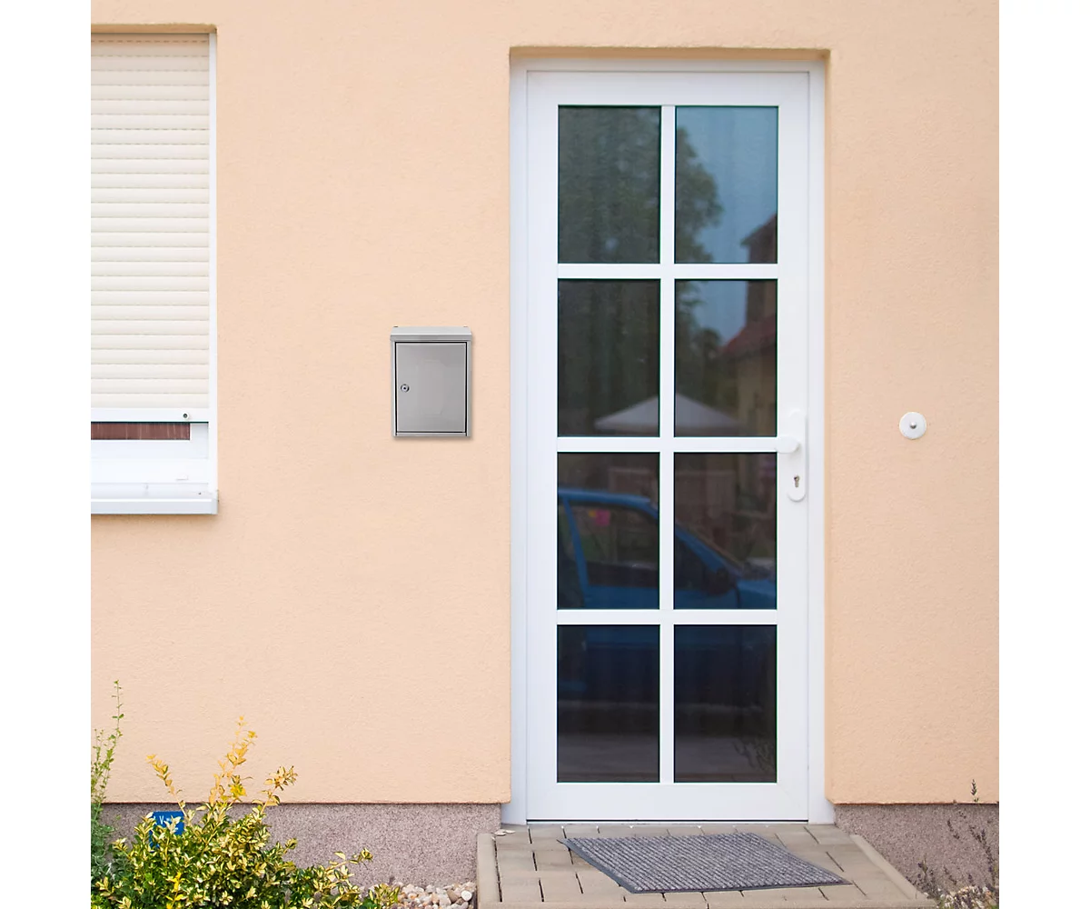 In dem Rottner Briefkasten Ferrara werden Briefe und weitere Postsendungen bis zu ihrer Entnahme gut geschützt verwahrt. Er verfügt über ein zuverlässiges Zylinderschloss und einen Einwurfschacht (B 200 x H 30 mm) mit Schutzklappe.