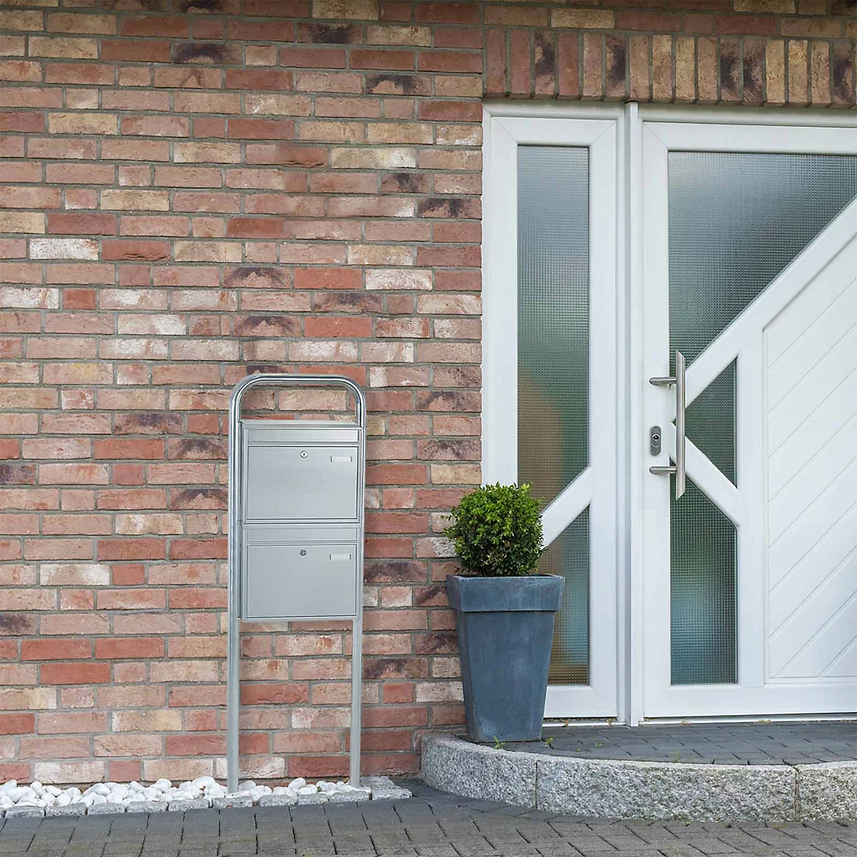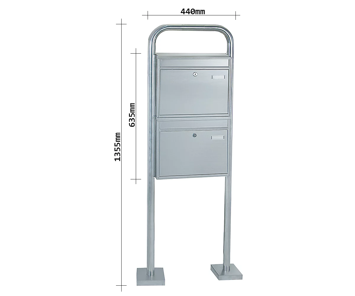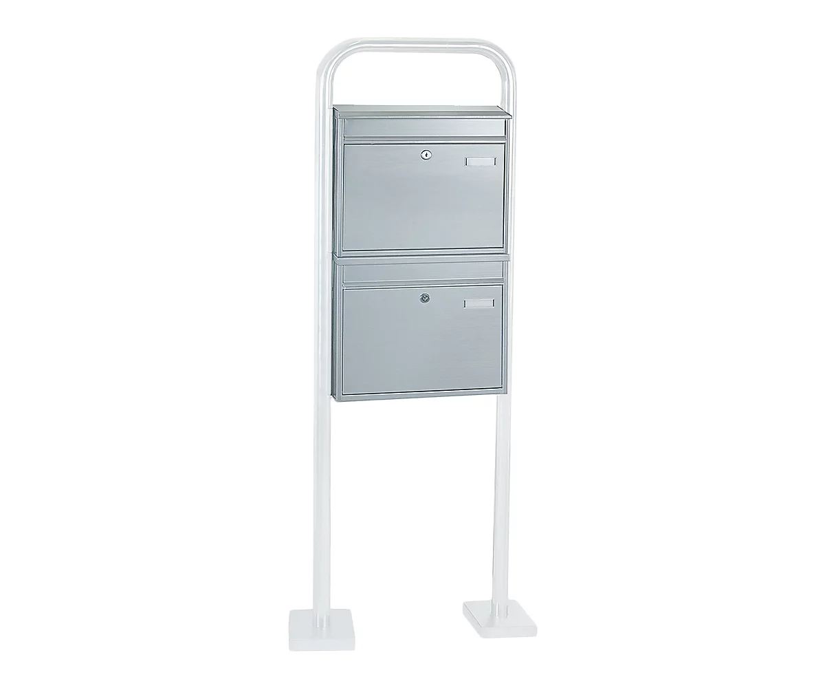 Bitte beachten Sie, dass der dazu passende, 1355 mm hohe Briefkastenständer nicht Teil des Lieferumfanges ist und als Zubehör separat dazubestellt werden muss. Dieser besteht ebenfalls aus Edelstahl und weist ein Gesamtgewicht von 5,6 kg auf.