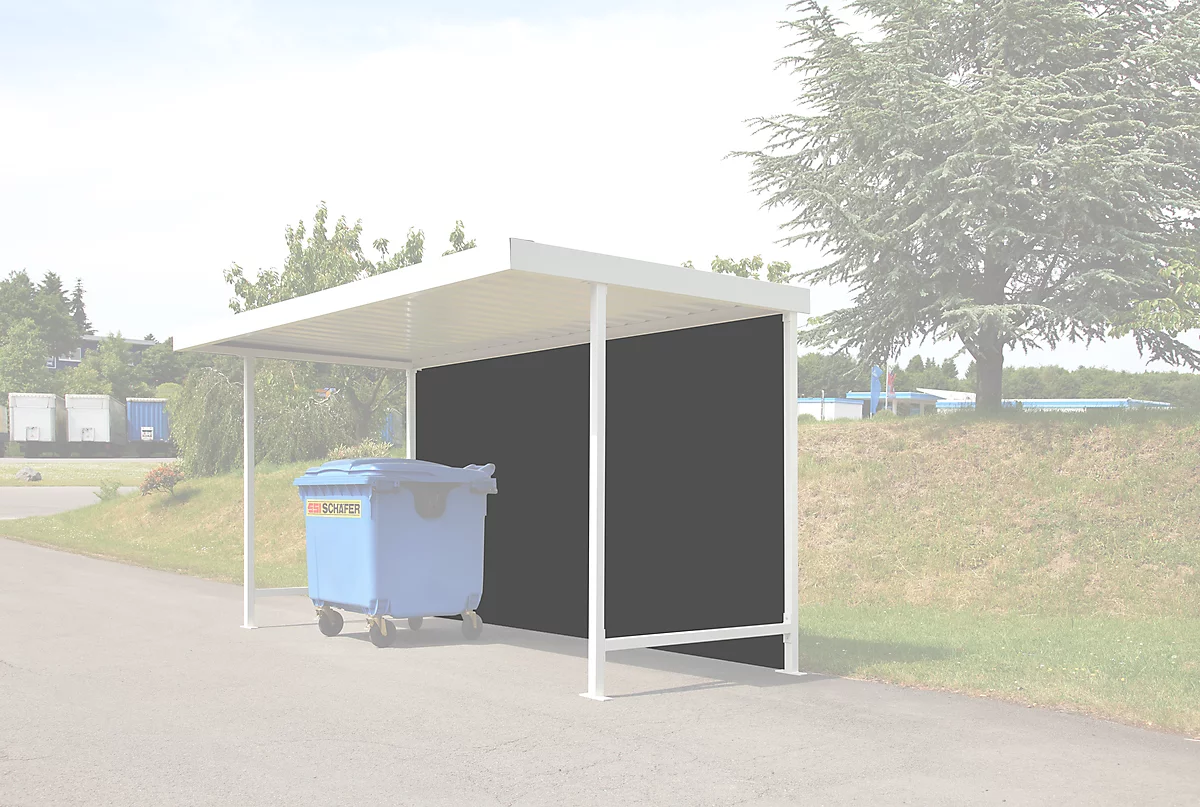 Durch die wahlweise verzinkte oder farblich in Grauweiß RAL 9002 gehaltene Rückwand können Sie sowohl die Grund- als auch die Anbaueinheit Leipzig ideal zur witterungsbeständigen Überdachung von Fahrrädern, Materialien oder Mülltonnen aufrüsten.