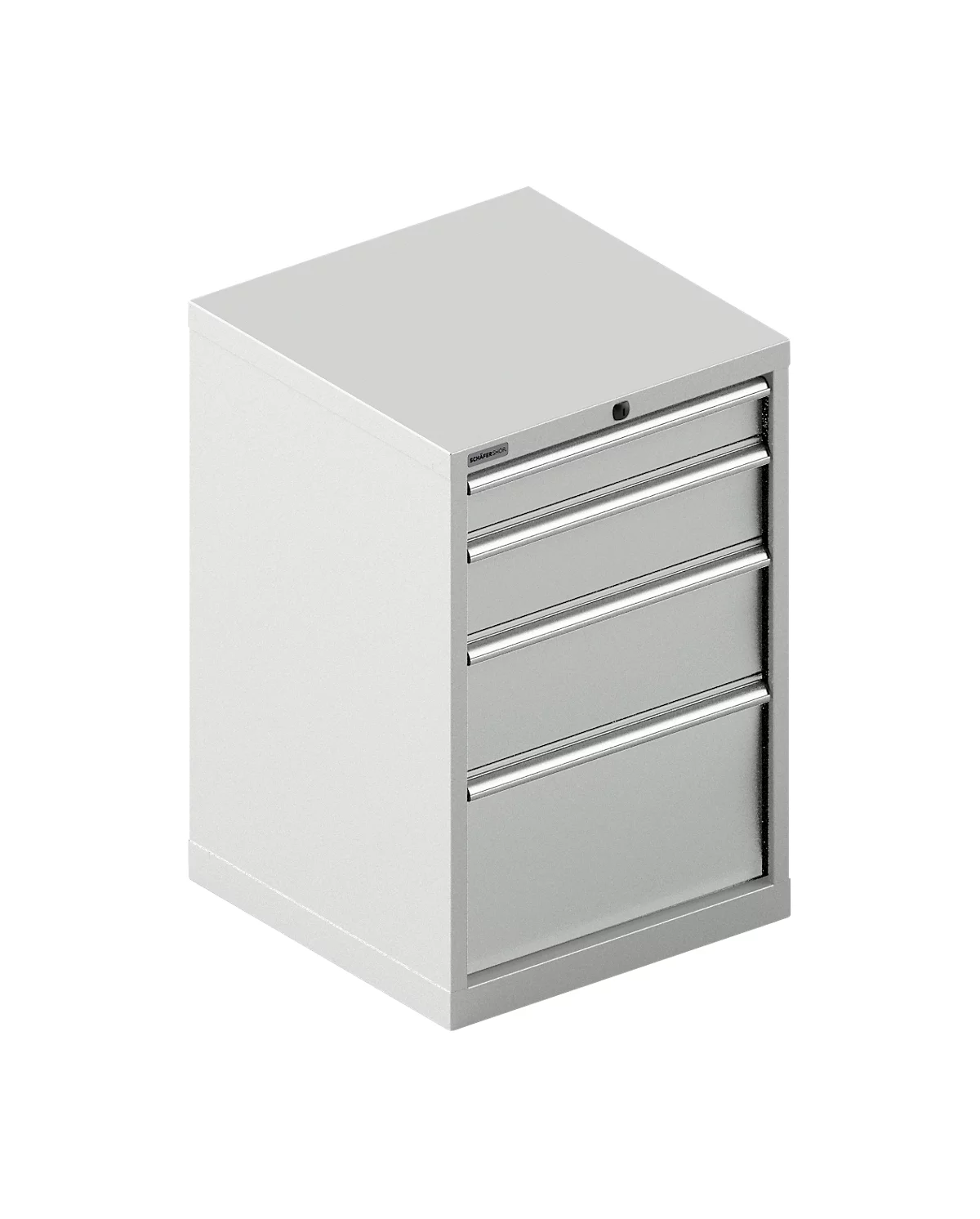 Jede einzelne Schublade trägt je nach Ausführung bis zu 75 kg oder 200 kg. Der robuste Schrank lässt sich zentral verriegeln, sodass der Inhalt gegen unberechtigten Zugriff geschützt ist.