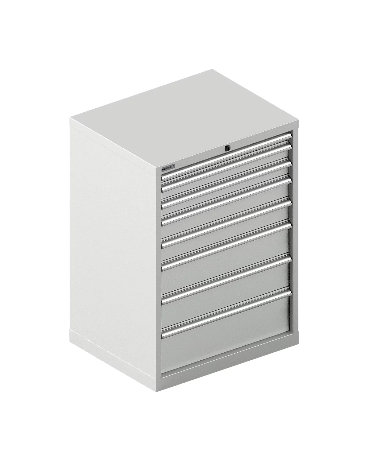 Setzen Sie bei der Lagerung Ihrer Betriebsmittel auf robuste Lagerflächen: Der Schubladenschrank SCHÄFER 36-27, den Sie mit 8 Schüben erhalten, schützt dank eines geschlossenen Gehäuses.