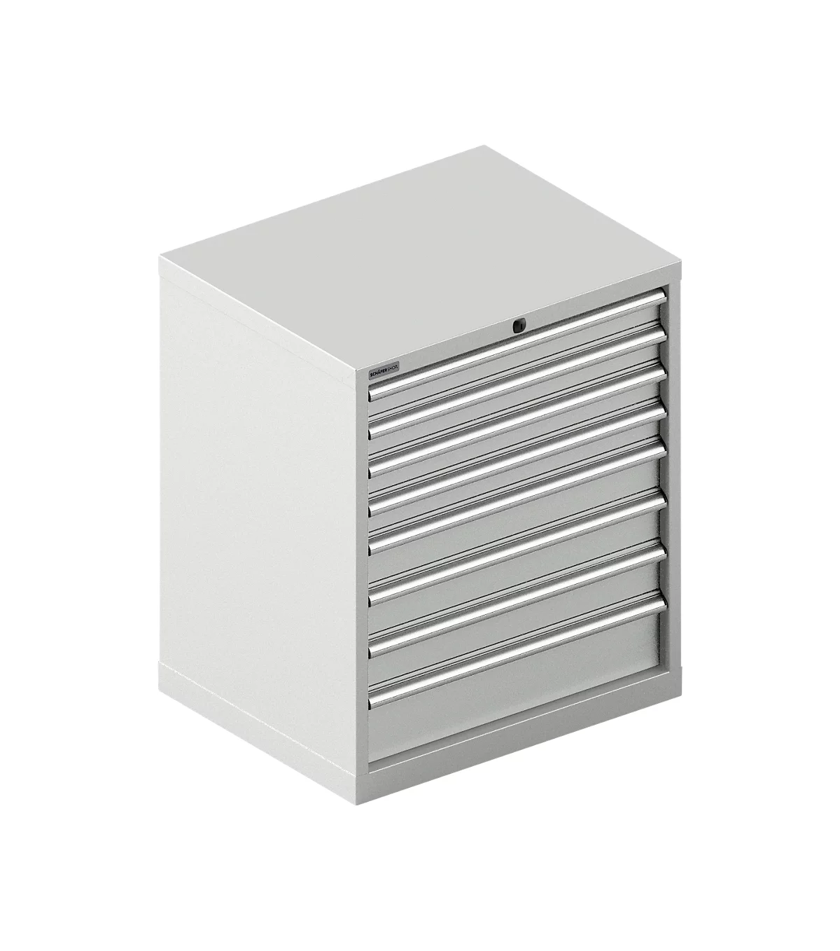Setzen Sie bei der Lagerung Ihrer Betriebsmittel auf robuste Lagerflächen: Der Schubladenschrank SCHÄFER 36-27, den Sie mit 8 Schüben erhalten, schützt dank eines geschlossenen Gehäuses.