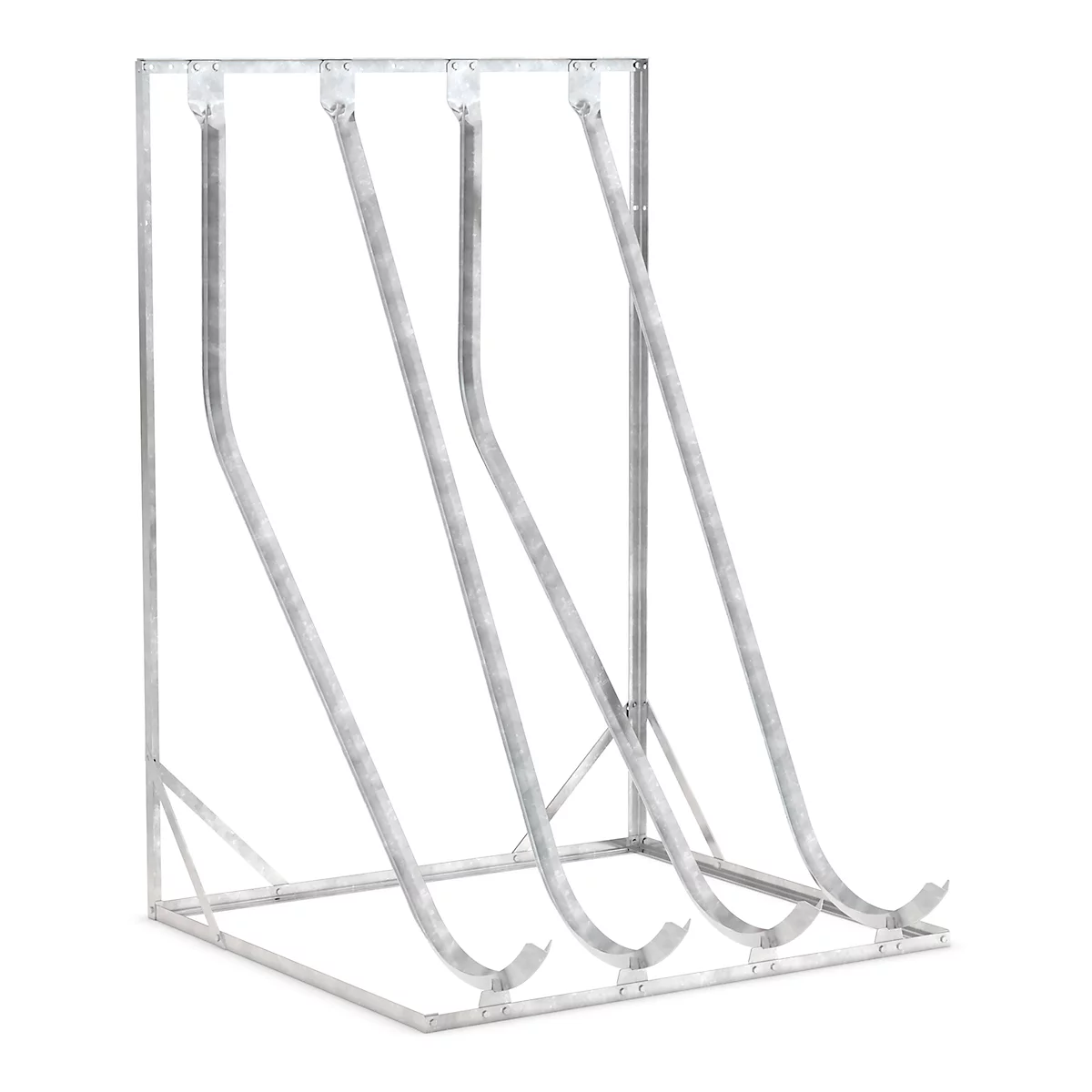 Dieser Schräghochparker von WSM erlaubt insbesondere bei engen Raumverhältnissen das zuverlässige und geordnete Parken von Fahrrädern, deren Reifen bis zu 60 mm in der Breite messen. Der Parker besteht aus robustem und verzinktem, korrosions- sowie wetterbeständigem Stahl und ist mit 60 mm breiten, gebogenen Einhängeschienen ausgestattet.