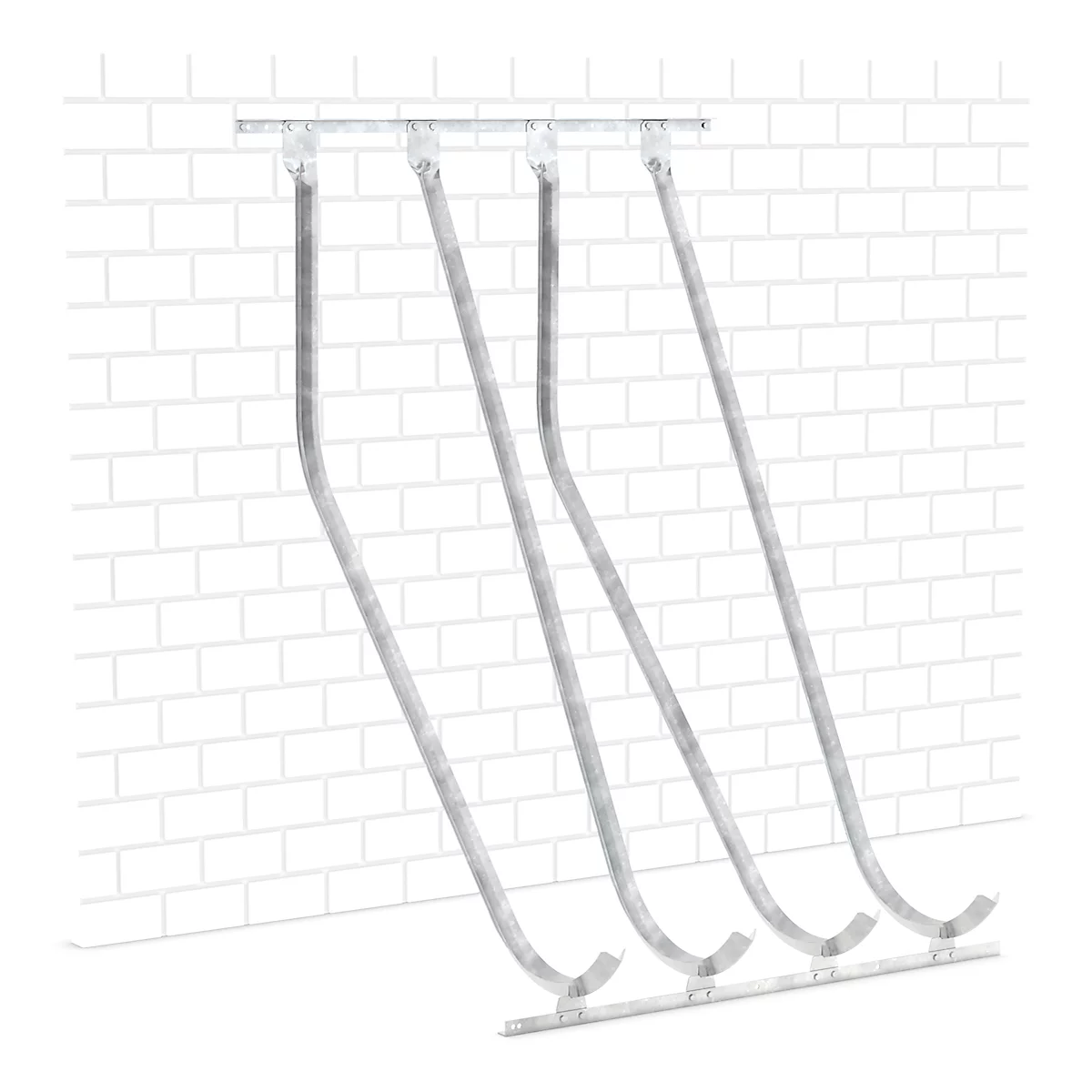 Dieser einseitig verwendbare Schräghochparker von WSM ermöglicht gerade bei beengten Platzverhältnissen das ordnungsgemäße und sichere Parken von Fahrrädern mit einer Reifenbreite bis zu 60 mm. Gefertigt wurde er aus robustem und verzinktem, korrosions- sowie witterungsbeständigem Stahl.