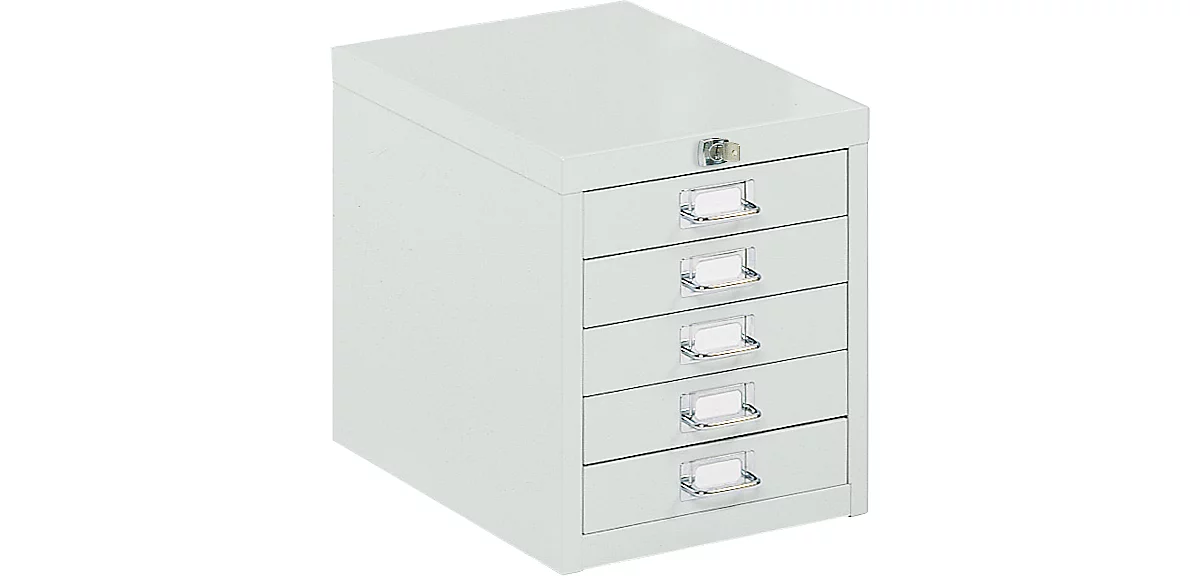 Die Schubladenschränke sind aus Stahlblech gefertigt und einbrennlackiert. Jede Schublade besitzt einen praktischen Bügelgriff. Mit Einsatzmulden aus Kunststoff lassen sich die Schubladen optimal unterteilen. Durch Etikettenfelder auf den Schubladenfronten ist eine deutliche Kennzeichnung möglich.