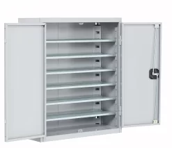 Werkstattschrank Mit Falttüren, B 1200 X T 500 X H 1935 Mm, Weißaluminium RAL 9006/enzianblau