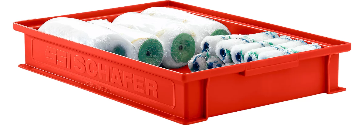 - Einsatzzweck: Optimiert (geräuschdämpfend) für Einsatz auf Förderstrecken, eignen sich besonder für den innerbetrieblichen Transport oder Versand, passen exakt in alle SSI-Schäfer Regalsysteme
