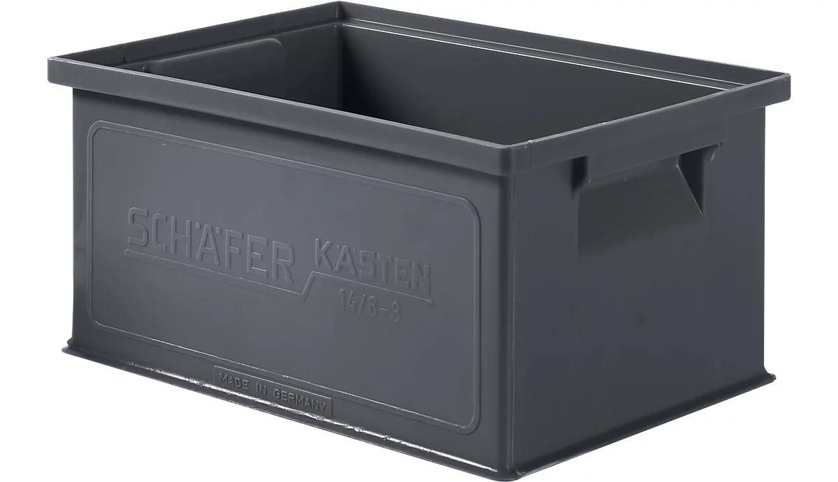 Der ESD-leitfähige Stapelkasten ist aus PP gefertigt und damit sehr formstabil und robust. Der praktische Stapelkasten überzeugt durch seinen Inhalt von 26 Litern.