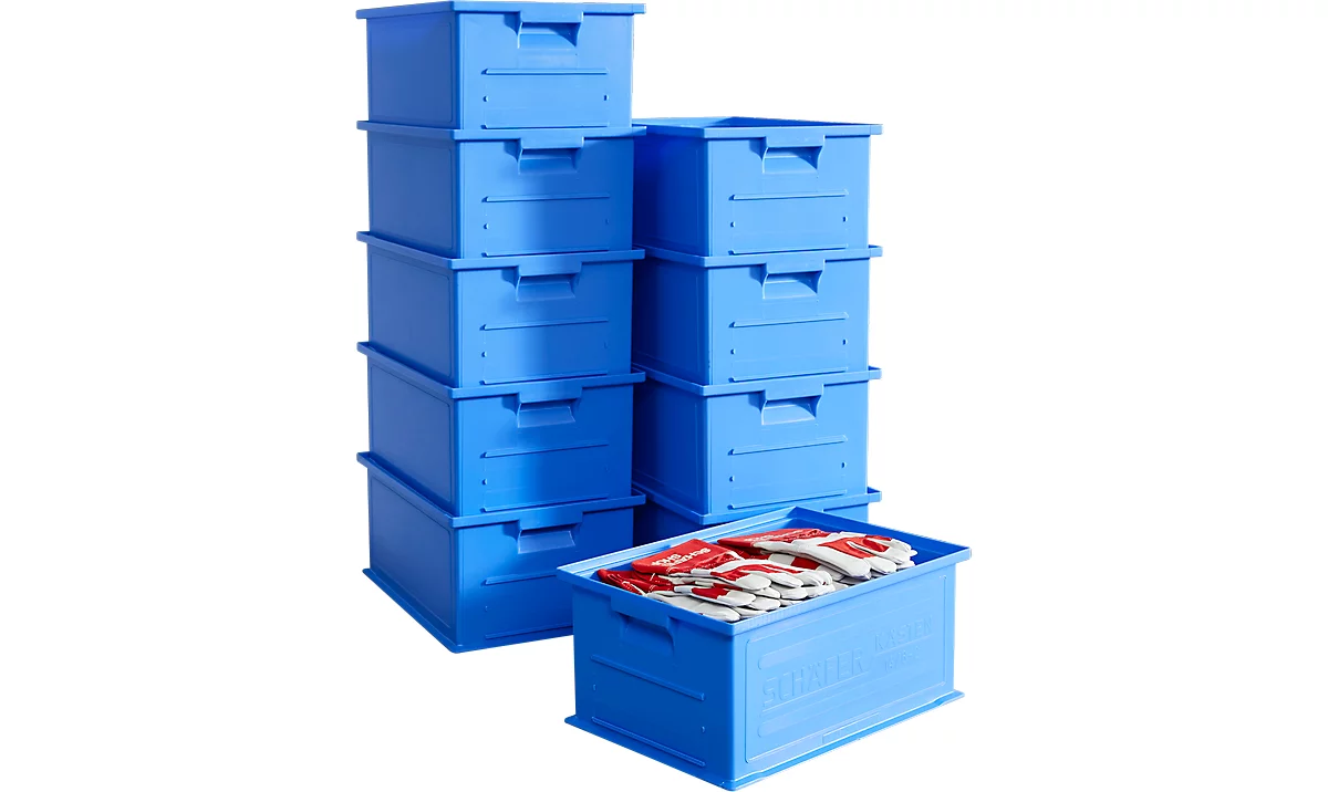Den in verschiedenen Farben erhältlichen SSI Schäfer Stapelkasten der Serie 14/6-2 erhalten Sie im praktischen 10er-Sparset. Diese Stapelboxen verfügen jeweils über ein großes Fassungsvermögen von 21 l und eine hohe Tragkraft bis zu 30 kg. Sie sorgen zuverlässig dafür, dass in Lager, Produktion und Werkstatt alle Abläufe geordnet und reibungslos vonstattengehen.