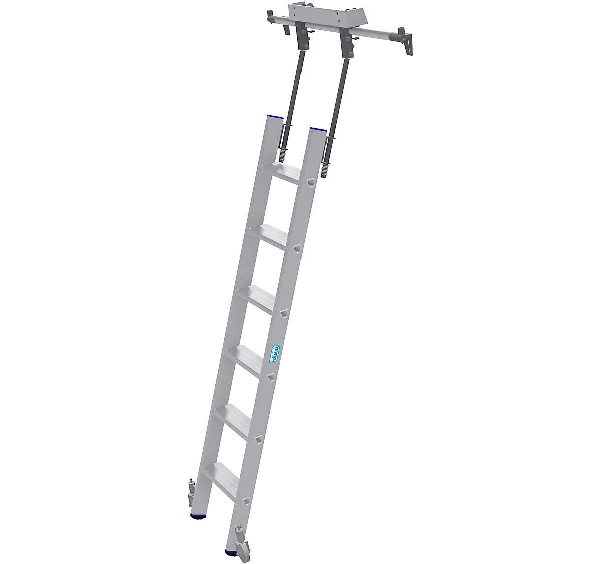 - Leiterneigung 21° und in der Parkposition senkrecht am Regal platzsparend abstellbar