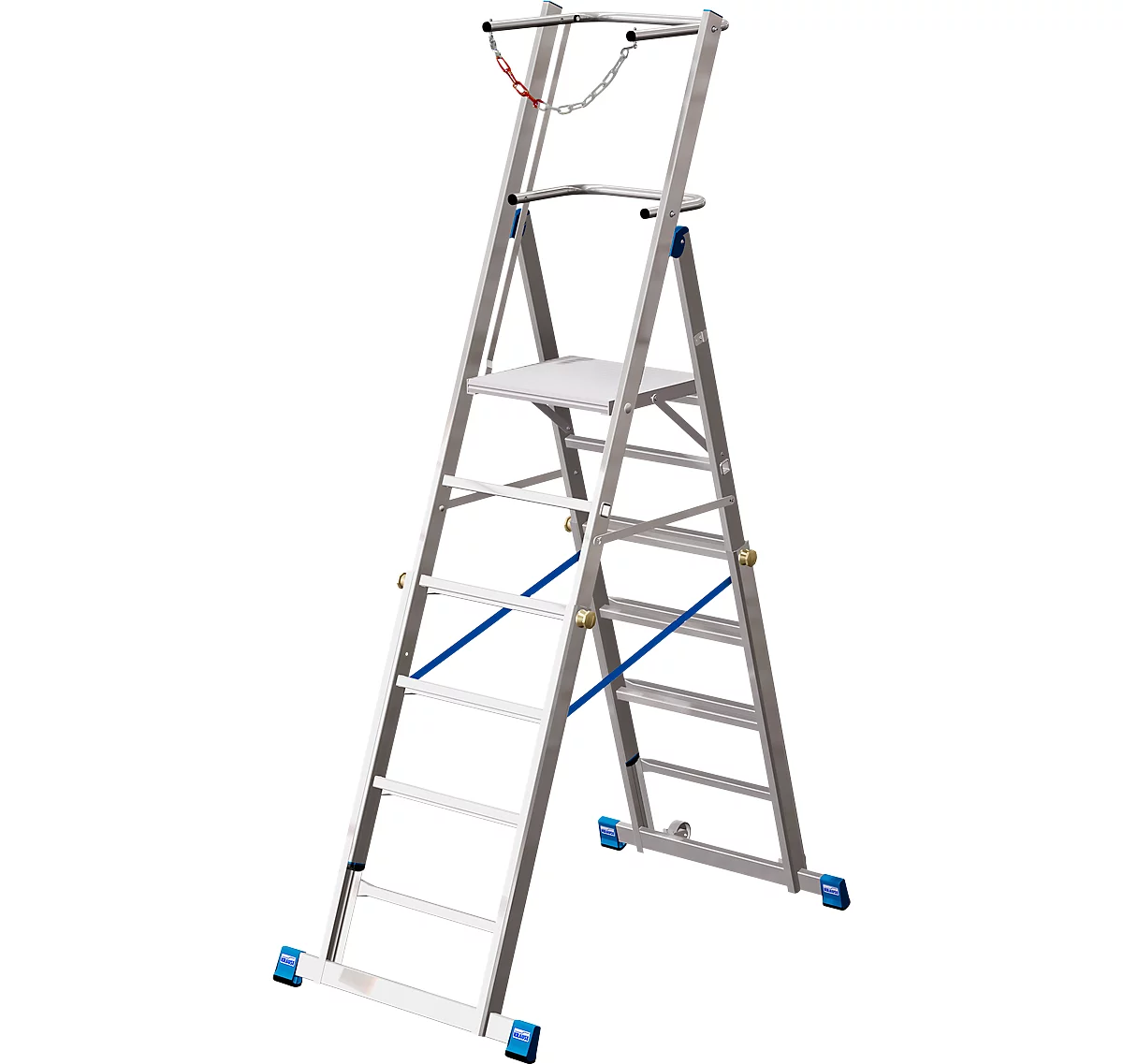- Maße Plattform: L 450 x B 500 x H 1550-2100 mm (bei 6-8 Sprossen) bzw. H 2100-2600 mm (bei 8-10 Sprossen)