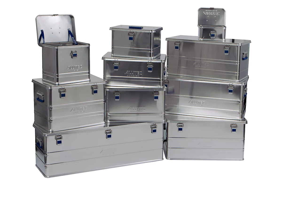Das verarbeitete Vollaluminium zeichnet sich durch seine hohe Witterungs- und Temperaturbeständigkeit aus. Das macht die Alutec COMFORT Boxen auf Baustellen wie auch in Werkstätten zu ganzjährig einsetzbaren Transport-Behältern.