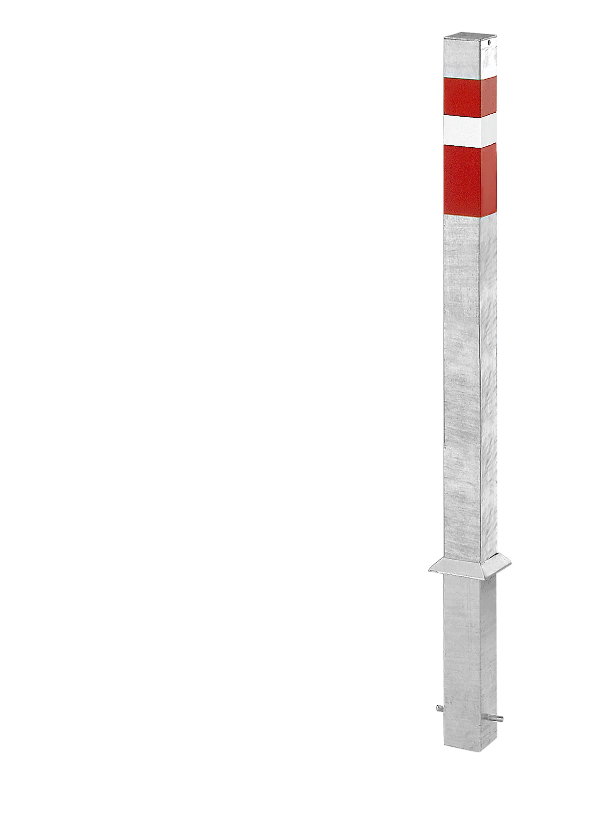 Der feststehende Vierkantpfosten zum Einbetonieren mit reflektierender Rot-Weiß-Markierung im Oberteil eignet sich ideal für dauerhafte Absperrungen von Bereichen.