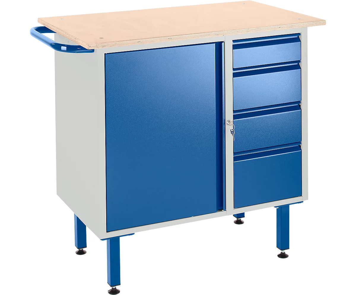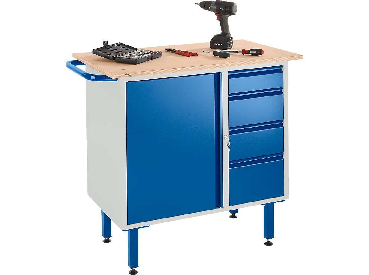 Werkbank Mit Schrank, 4 Schubladen Und Stellfüßen